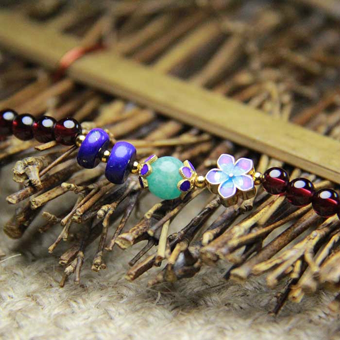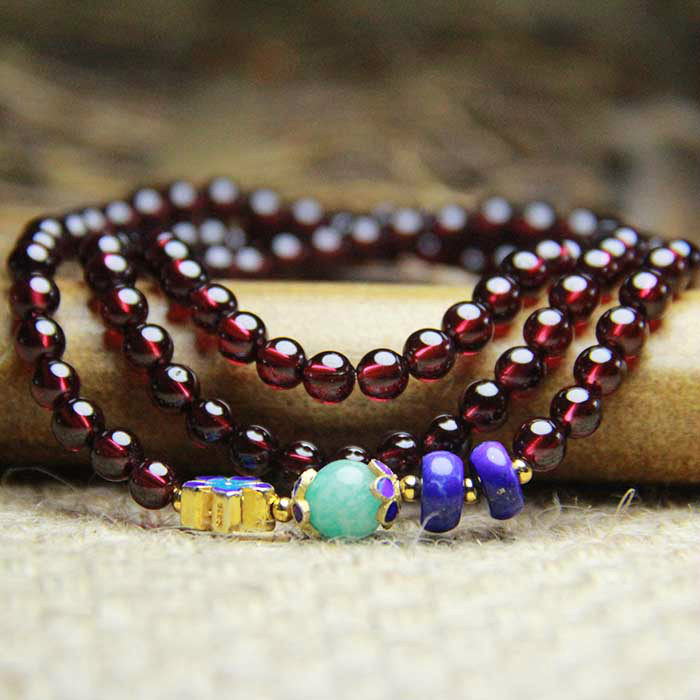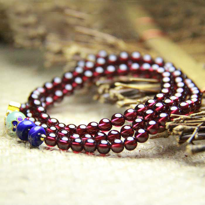 锦石阁简约石榴石手链天然6a级女款手串多圈散珠配天河石青金石男