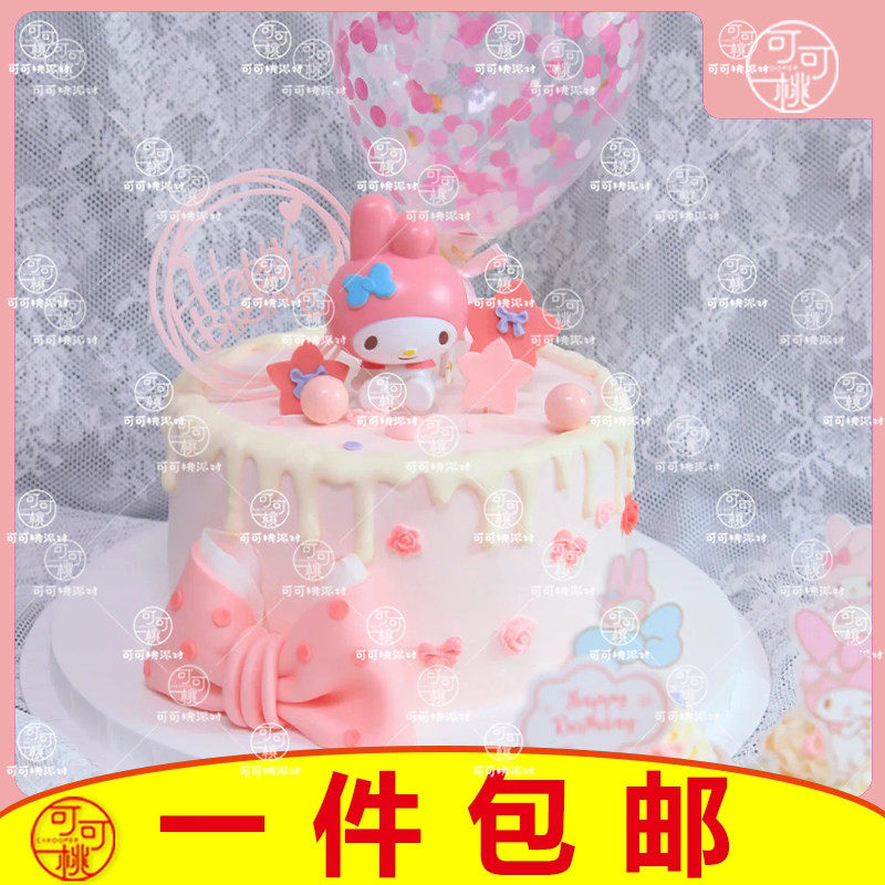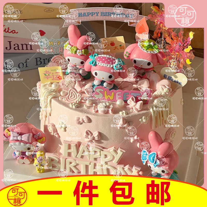 美乐蒂生日布置蛋糕摆件女孩粉色甜品台装饰meloday三丽欧插牌件