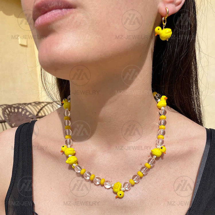 欧美小众淡水珍珠白水晶绿色仙人掌短项链时髦气质琉璃鸭子锁骨链
