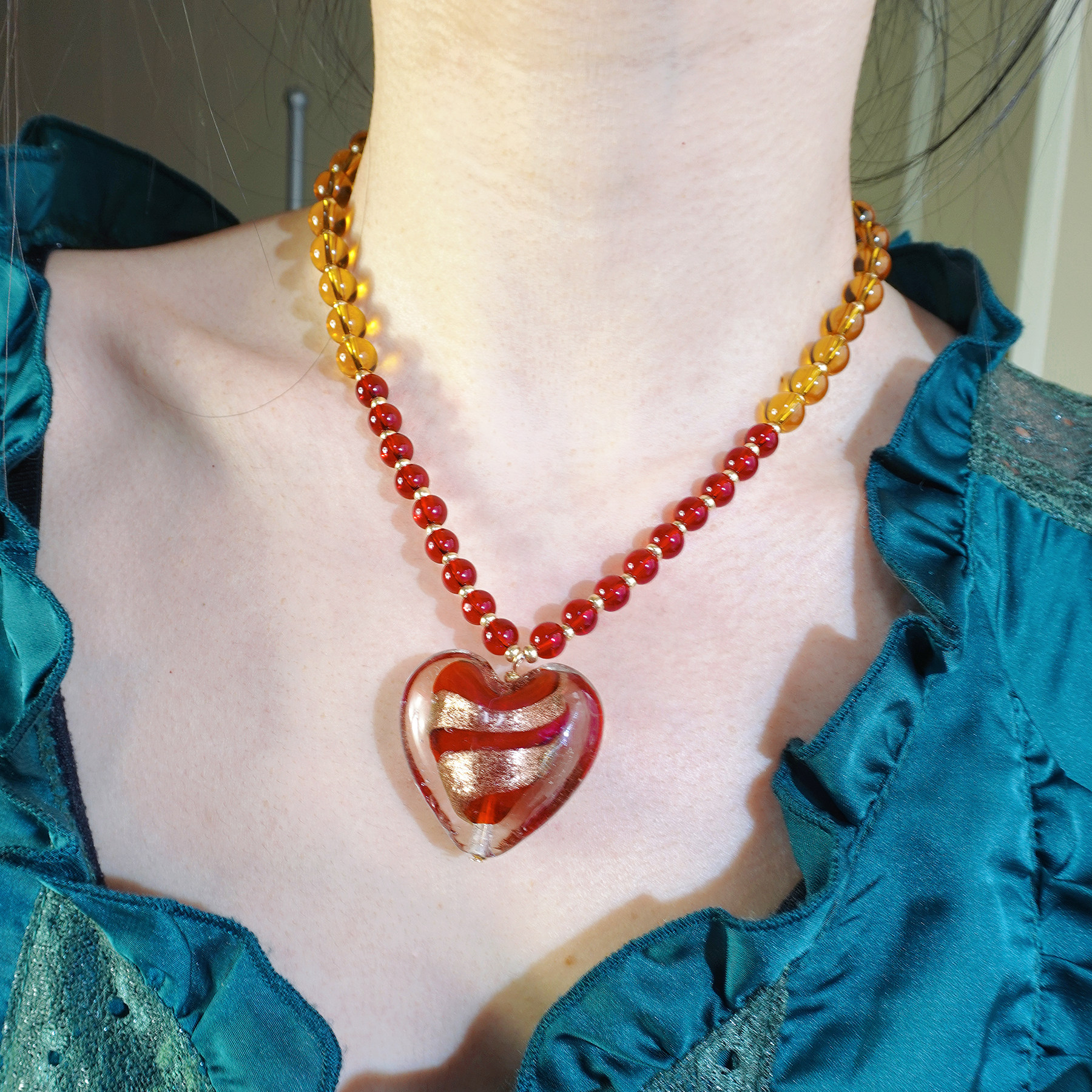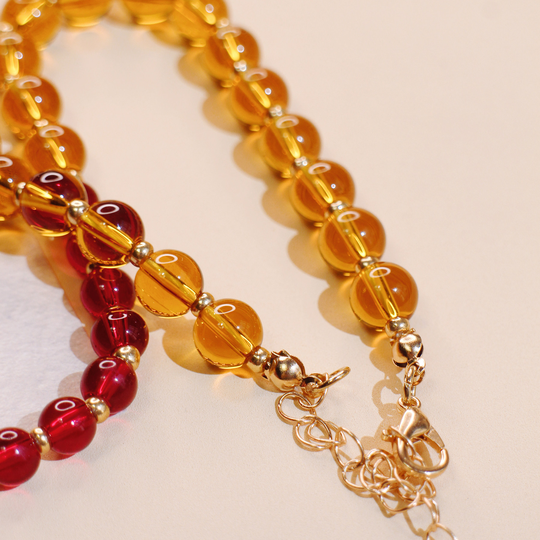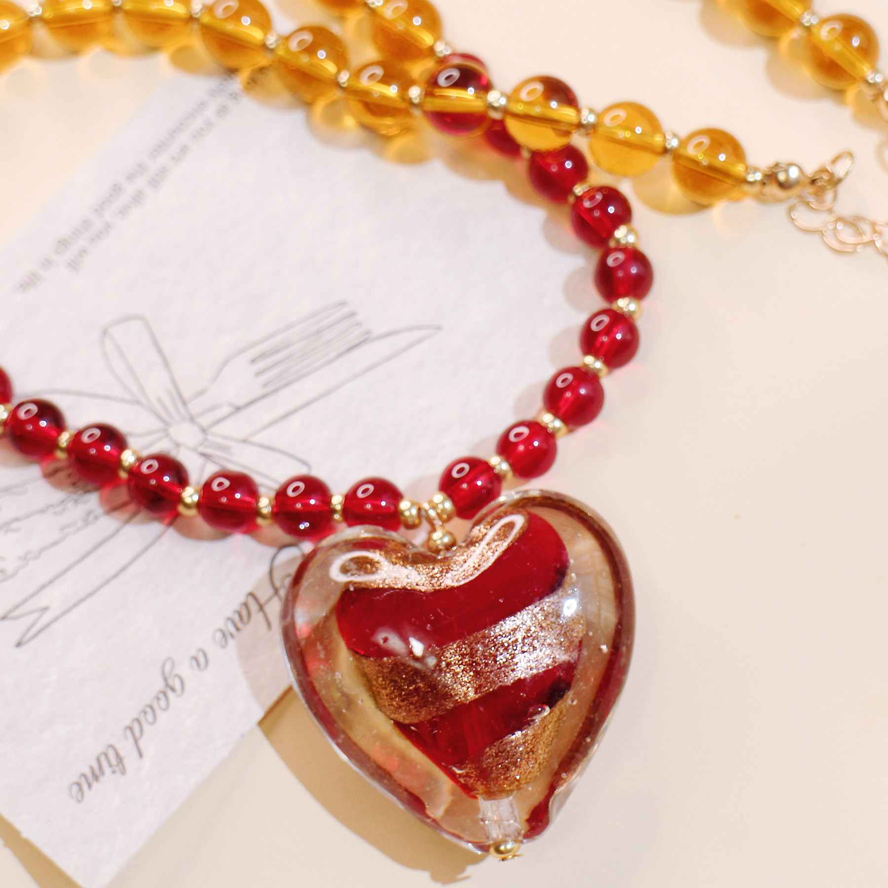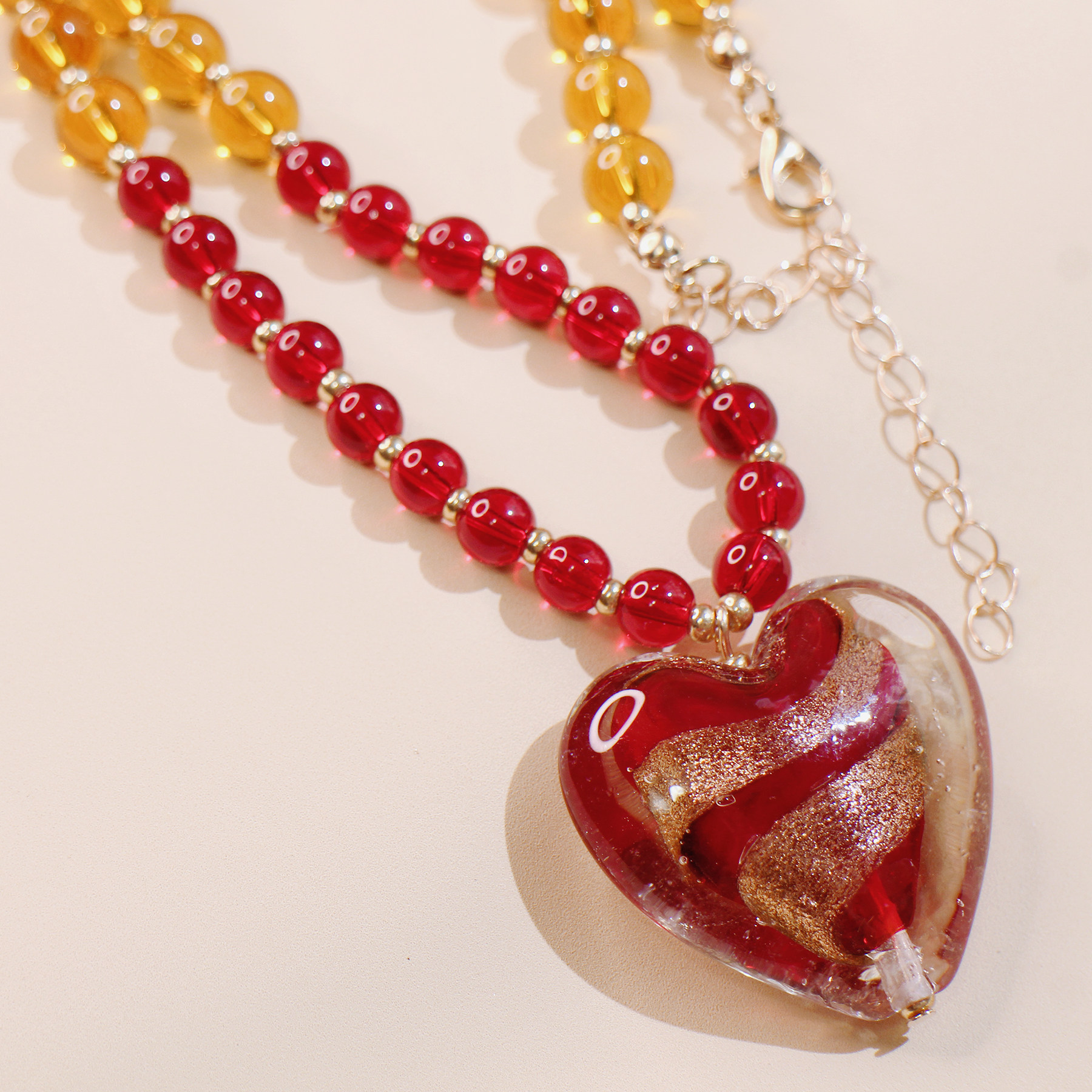 myzoo夸张大爱心红色条纹项链琉璃串珠复古欧美锁骨链配饰女生
