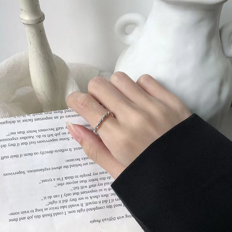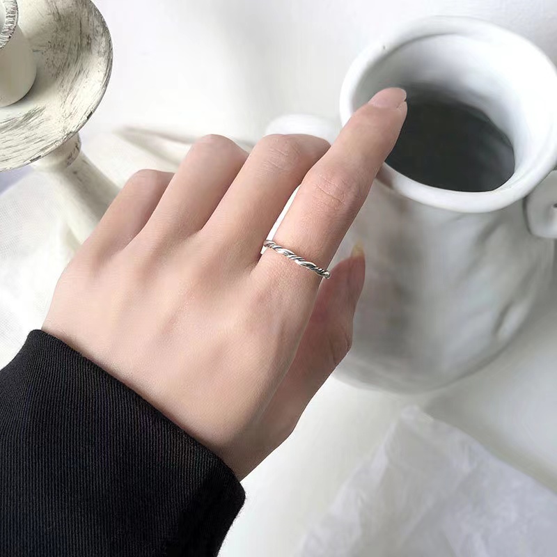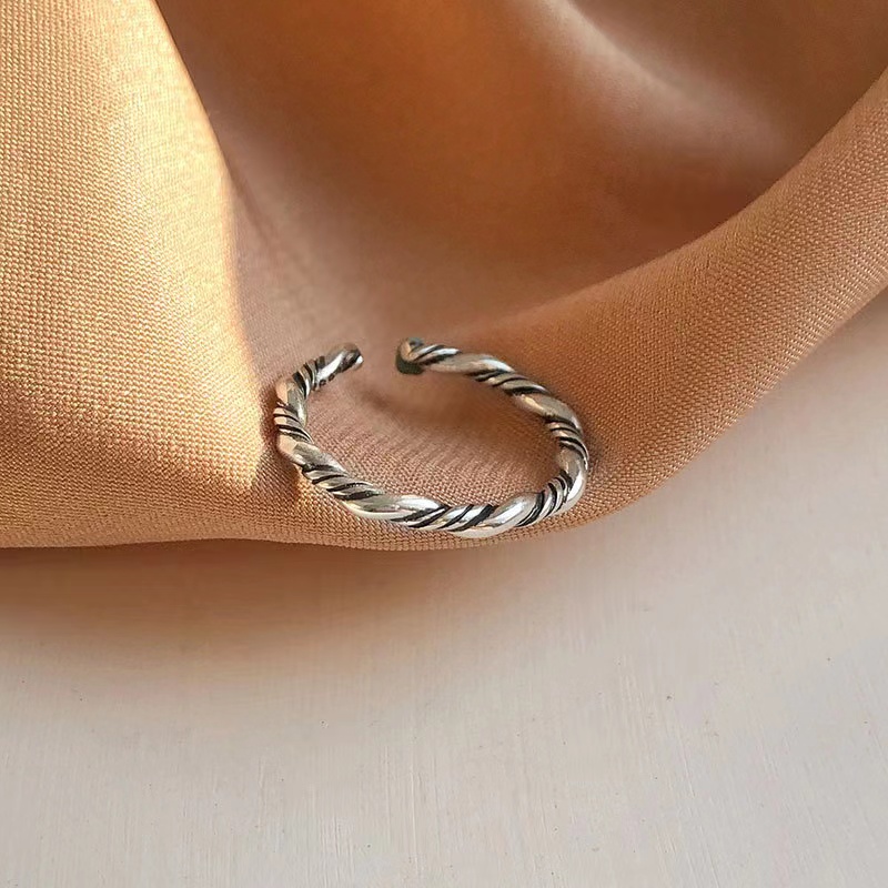 嘉兴银家S925纯银SASSYACC麻花戒指做旧chic时髦博主银饰开口戒指
