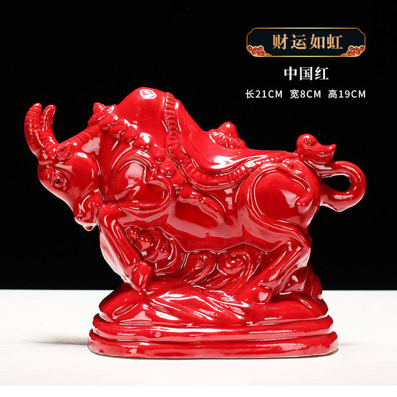红色牛气冲天牛年吉祥工艺礼品摆饰客厅酒柜博古架装饰品陶瓷工艺