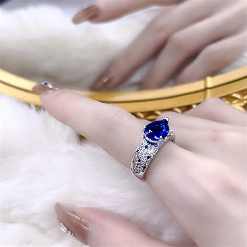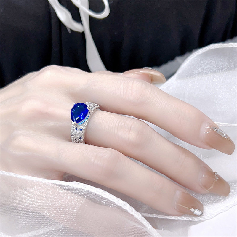 轻奢高级感培育蓝钻石彩宝戒指女开口微镶满钻锆石百搭个性礼物款