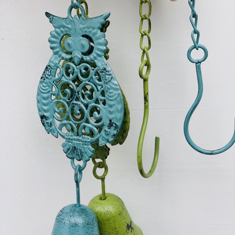 铸铁猫头鹰小鸟风铃挂件户外花园复古白色美式装饰创意园艺杂货