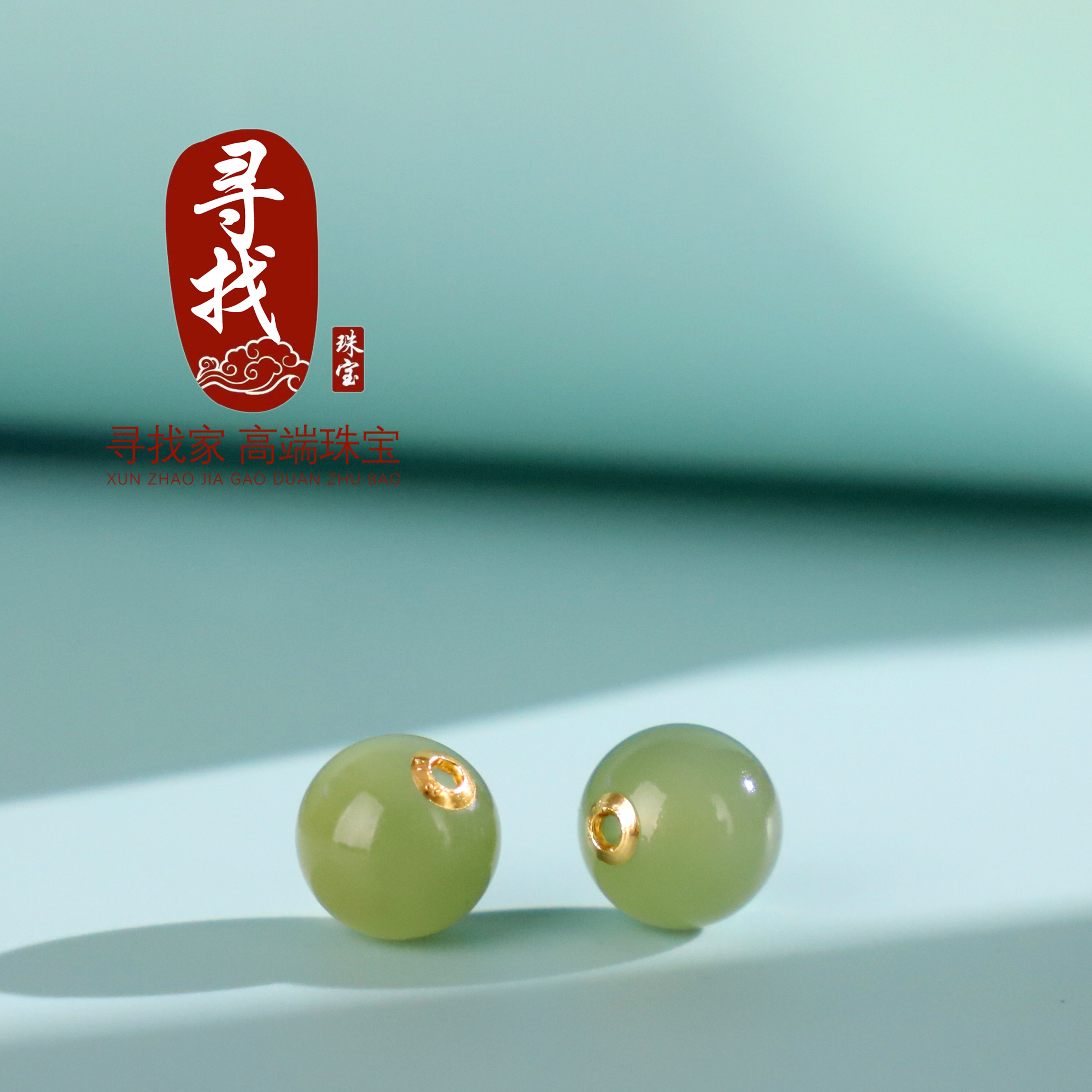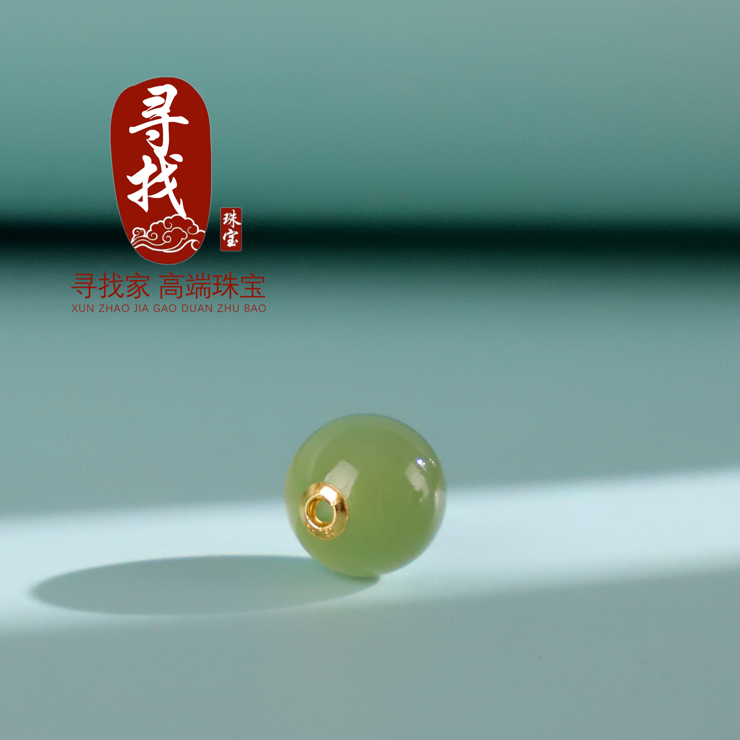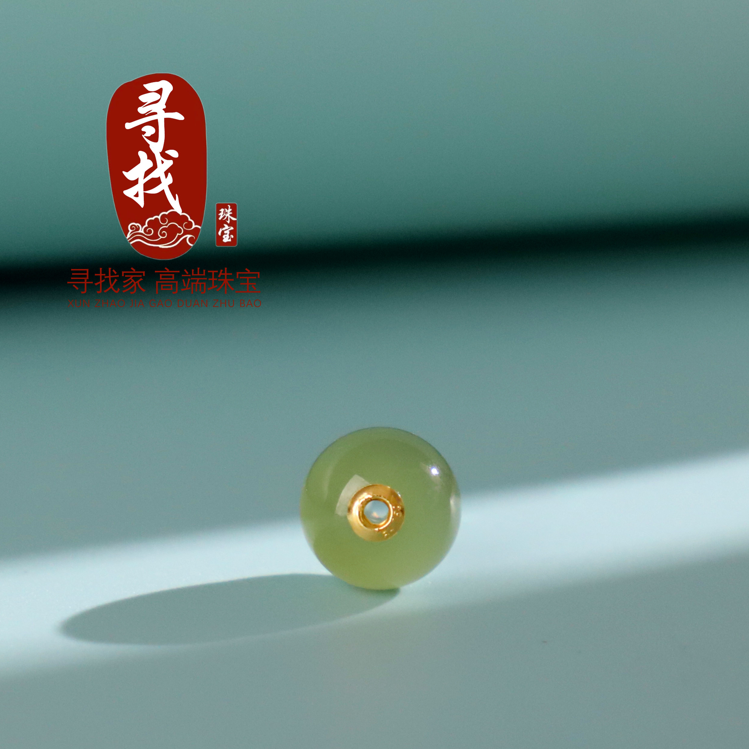 和田玉湖水绿18K金贴片圆珠单珠圆珠冰晴散珠 手链配珠路路通珠子