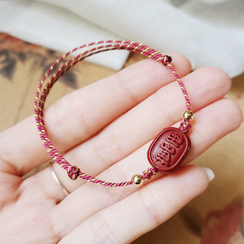 千金 原创天然紫金朱砂红编织国风文艺ben命年财字牌女简约细手绳