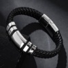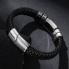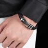 欧美时尚黑色皮绳编织手链简约百搭钛钢手镯男女刻字logo定制手饰