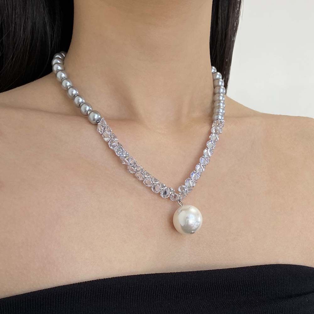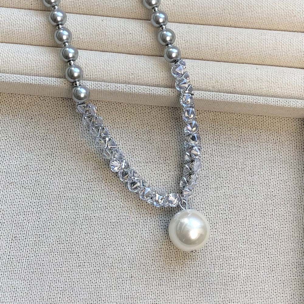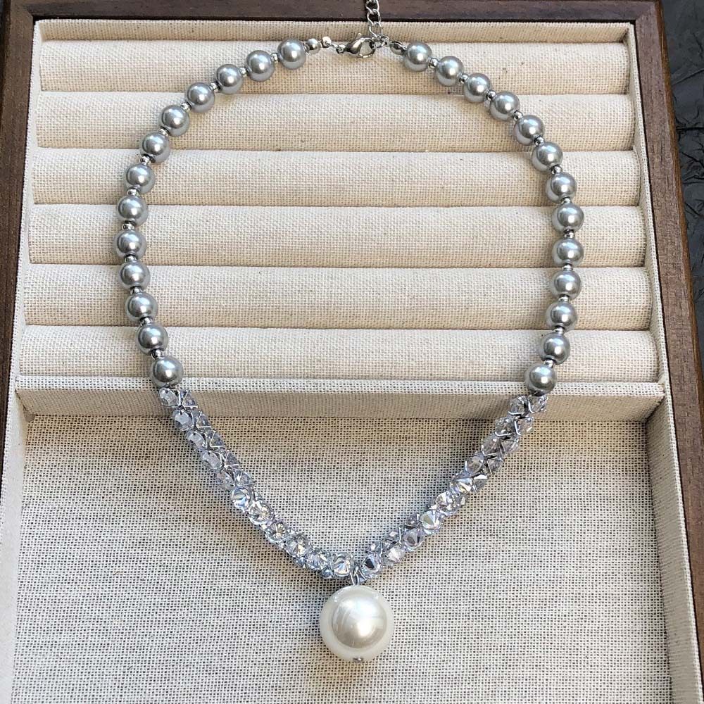 灰色珍珠锆石水晶拼钻项链女新款爆款轻奢高档闪钻锁骨链小众颈链