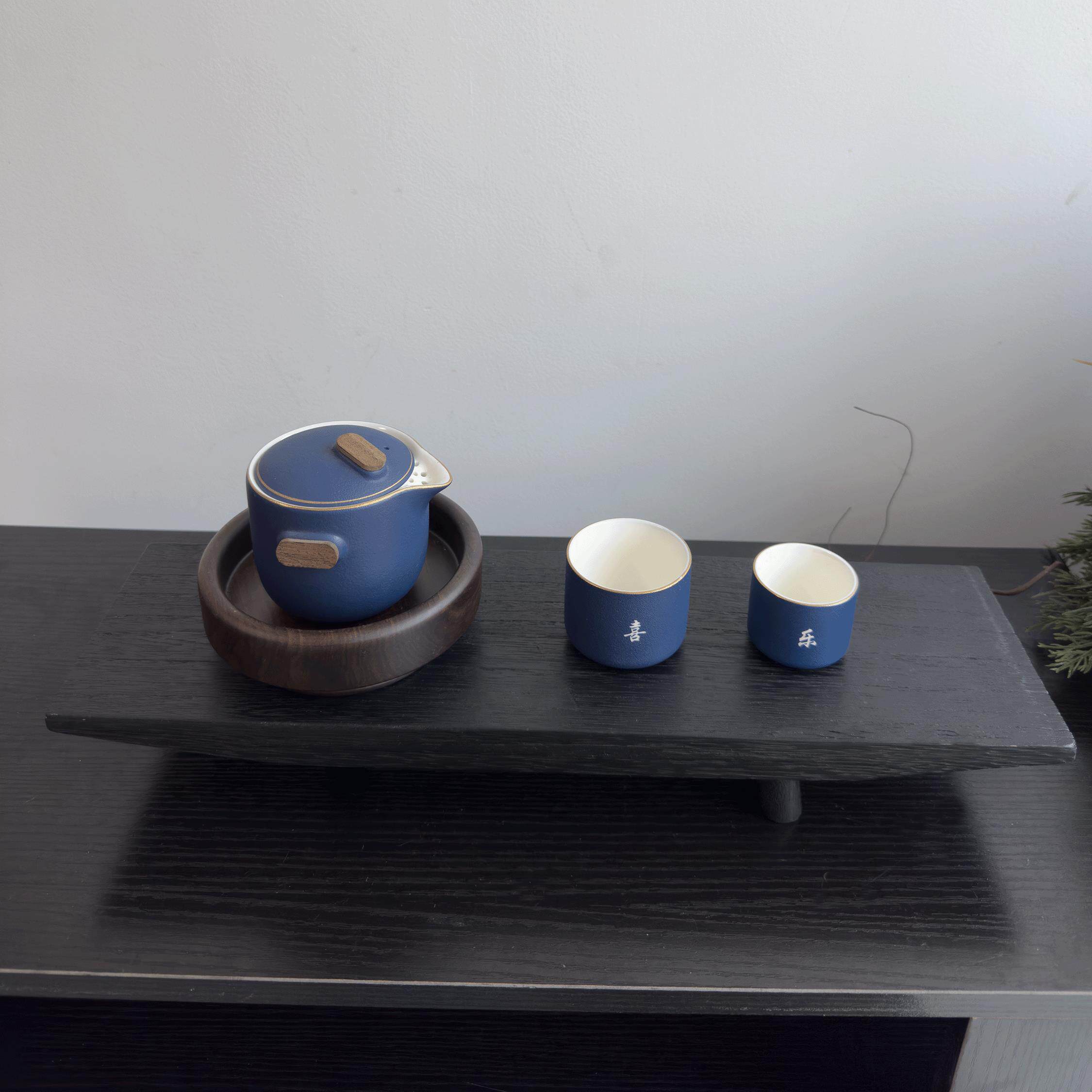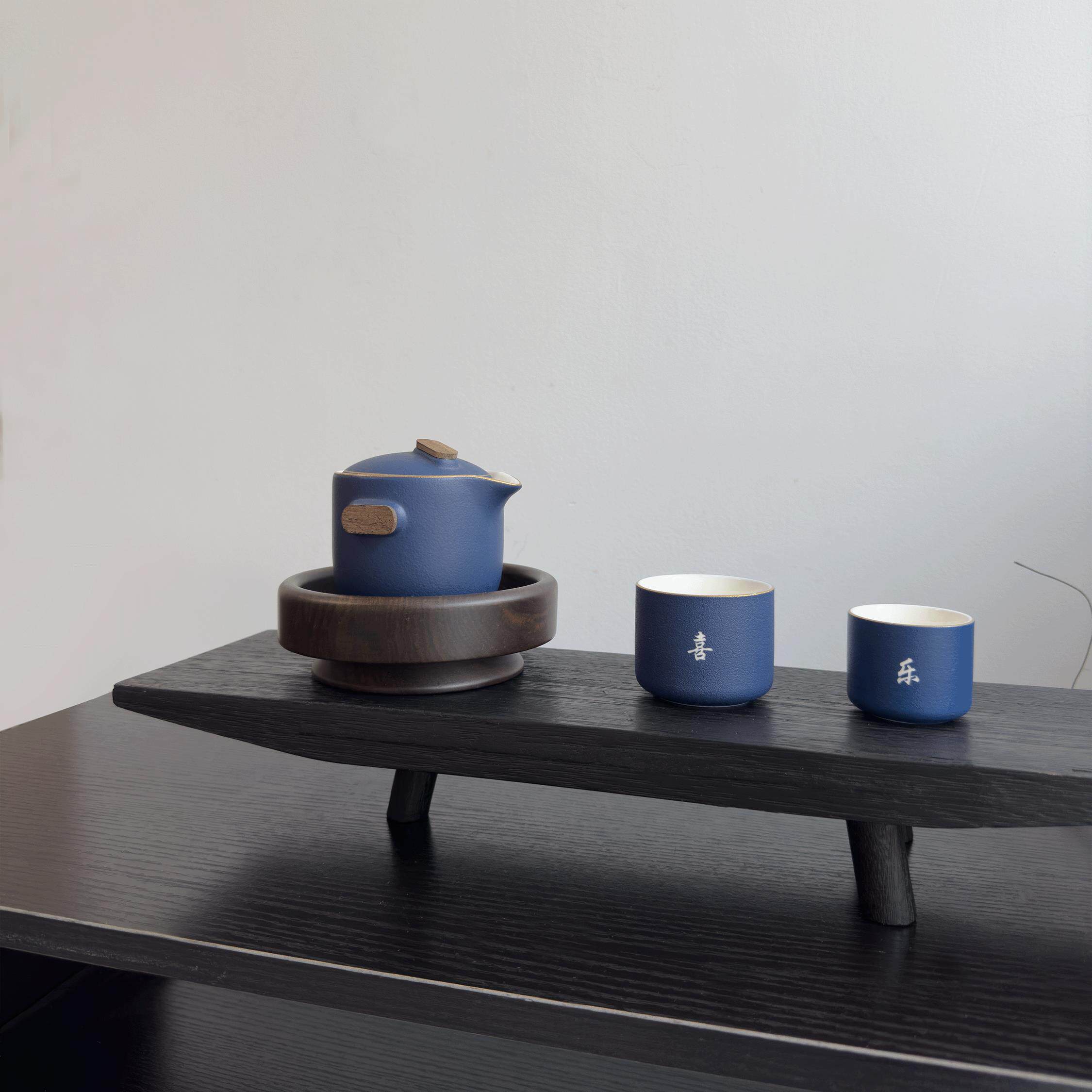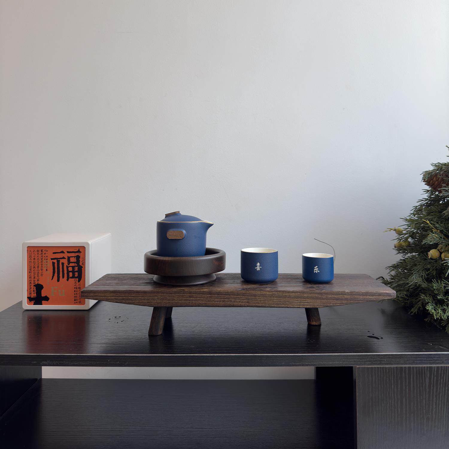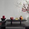 侘寂风黑色木质托盘长方形家用小型茶盘民宿高脚实木果盘装饰摆饰