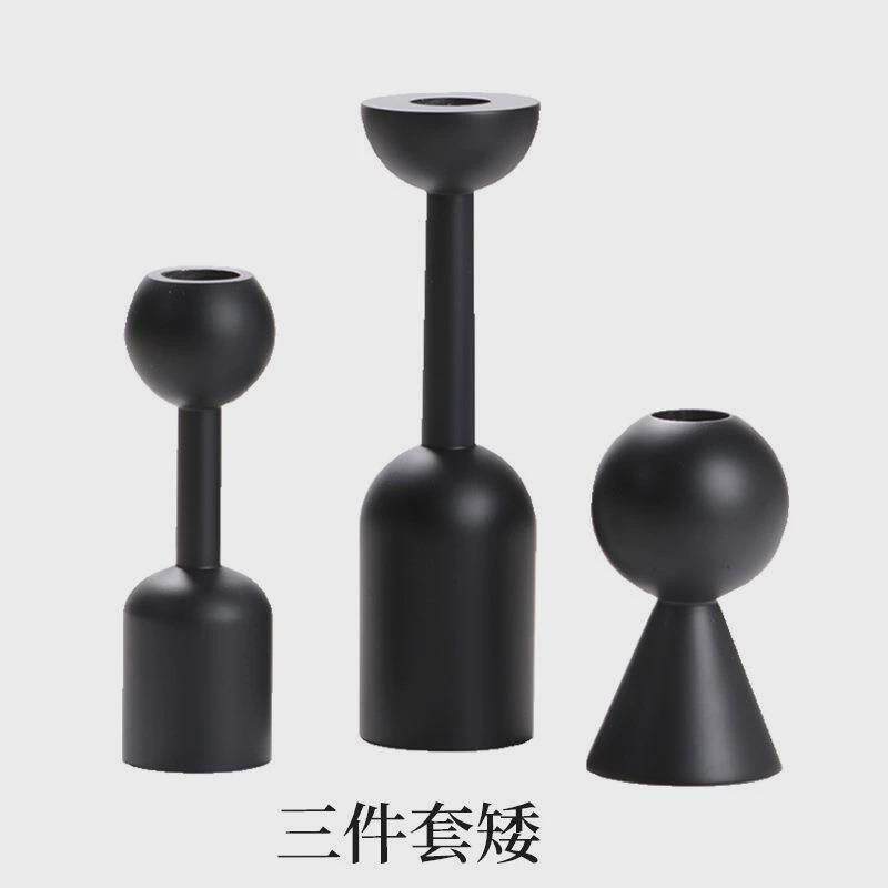 实木烛台北欧极简几何黑色烛托创意异形艺术摆件套组装饰品样板间