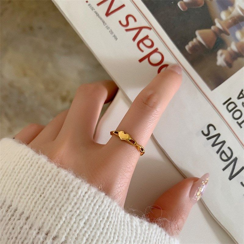 大码戒指女胖复j古镂空链条爱心时尚个性冷淡风粗手胖人食指指环