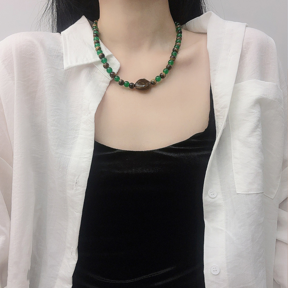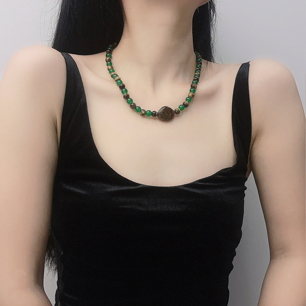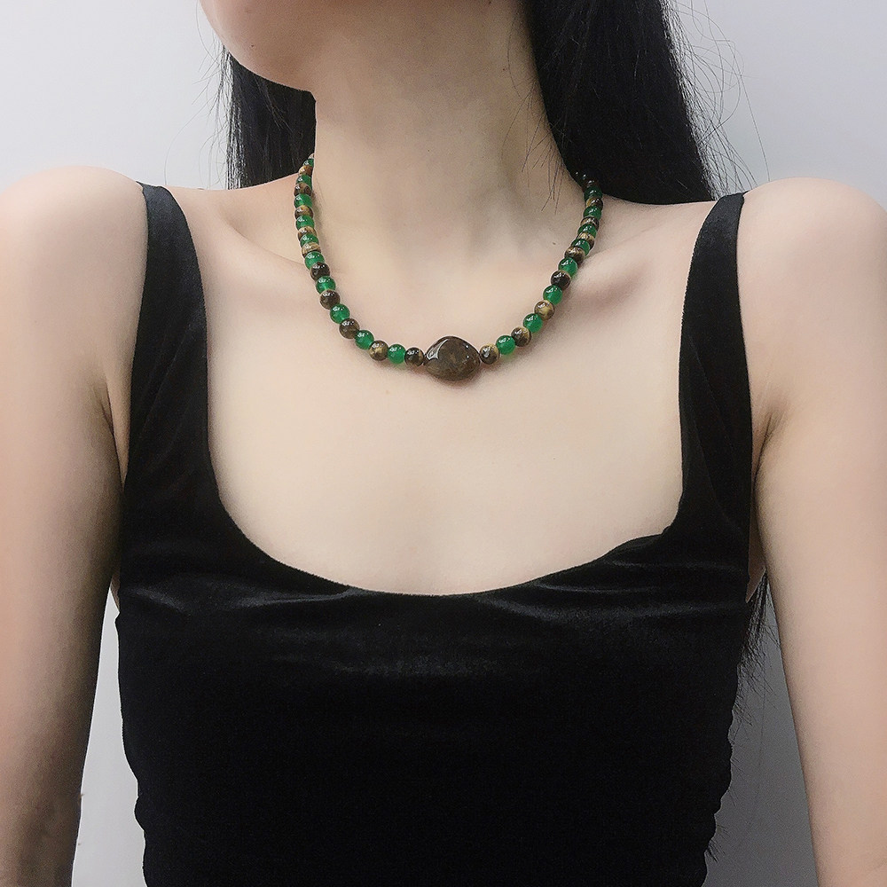新中式国风天然石串珠项链绿色百搭高级感锁骨链送闺蜜饰品女
