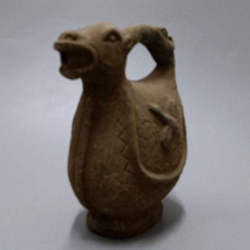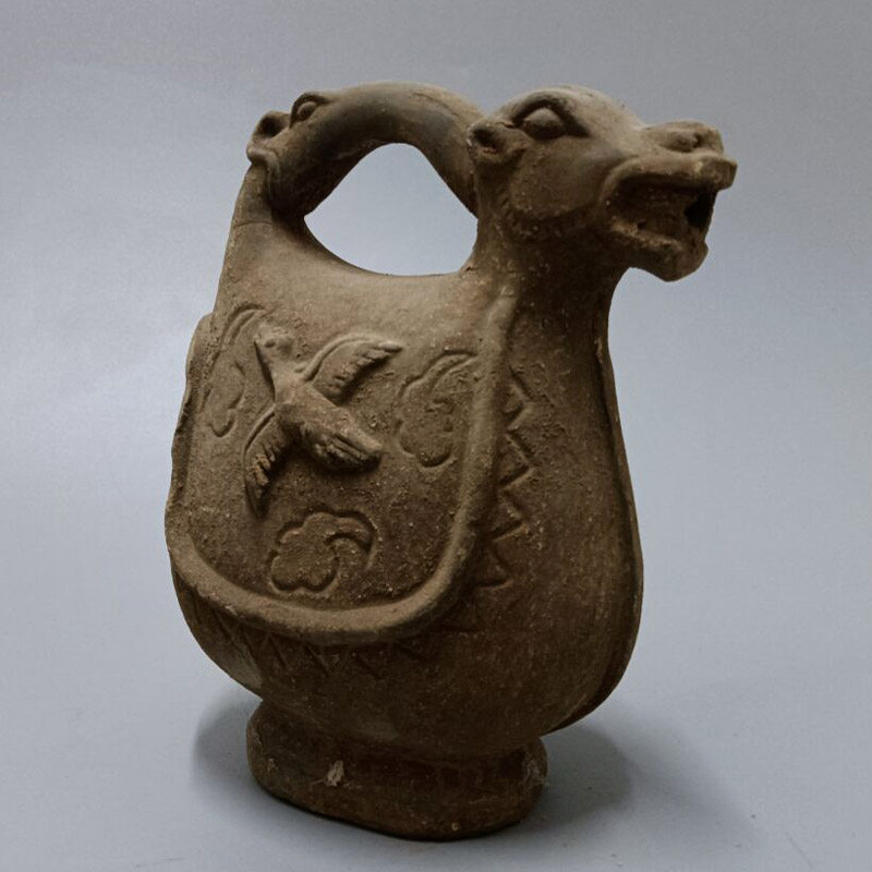 仿古陶器 汉代飞鸟虎头提梁壶 古典工艺品 博古架摆件 做旧 陶罐