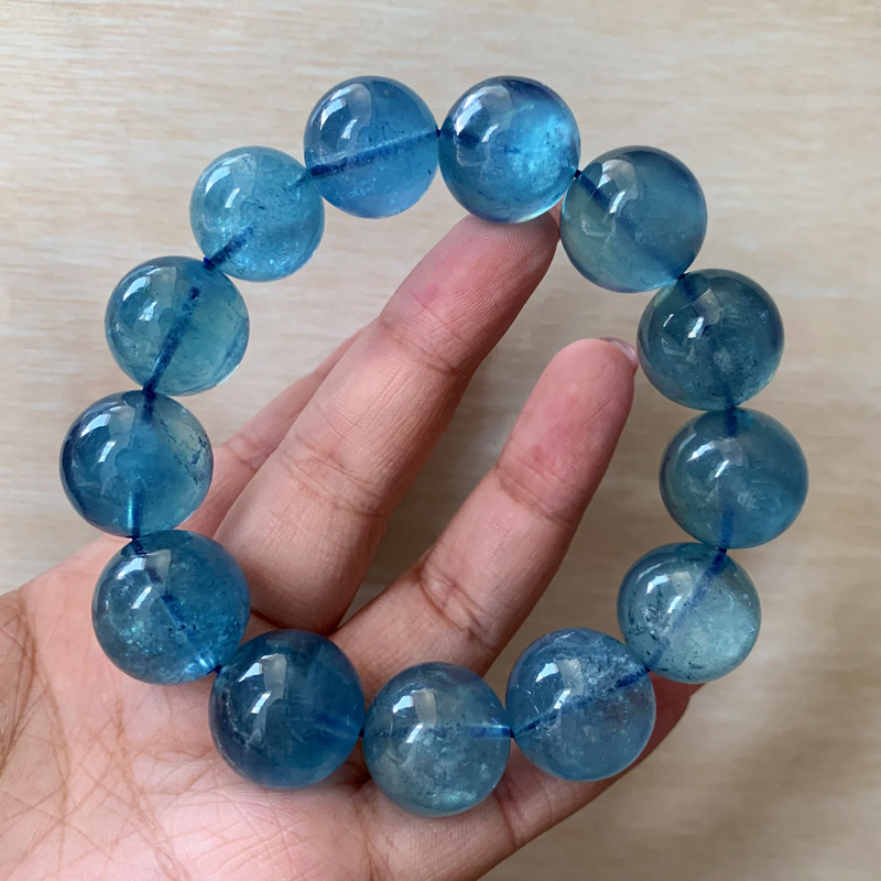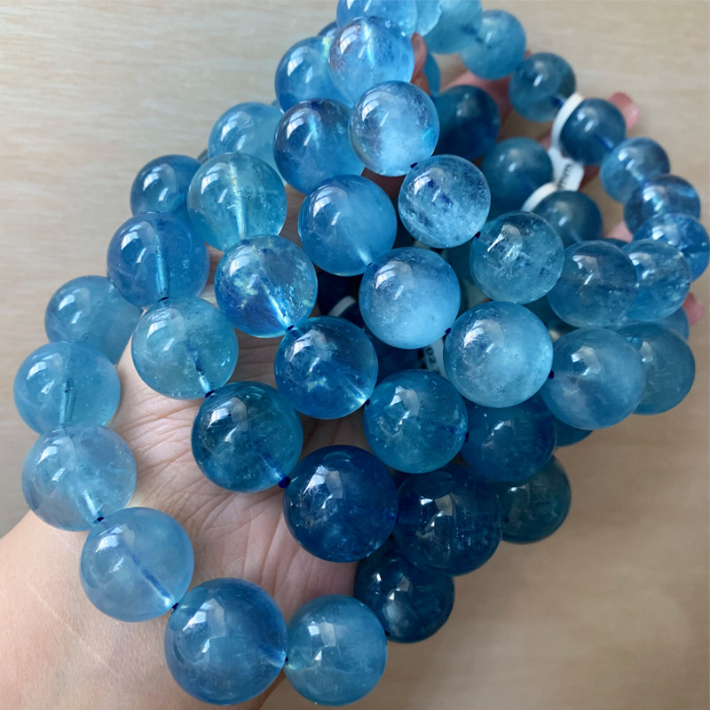 天然巴西湛蓝色海蓝宝单圈手链一物一图冰种蓝水晶手串礼物饰品女