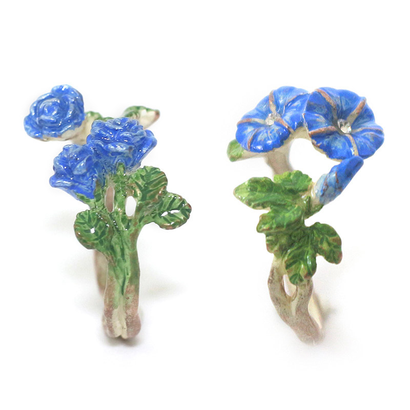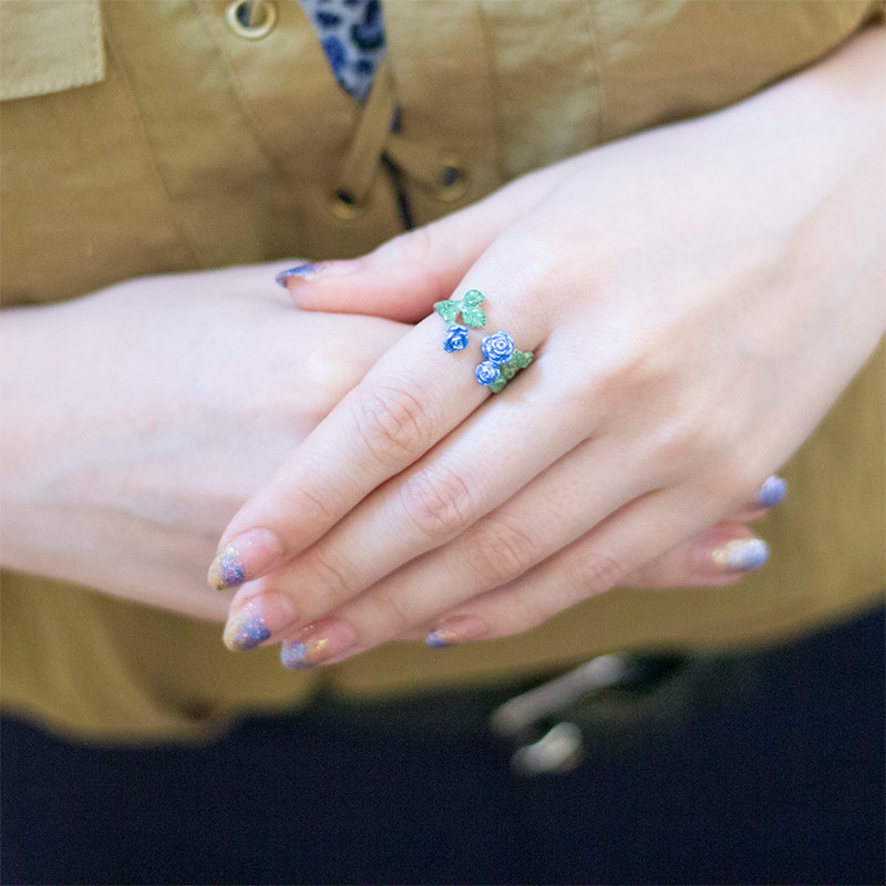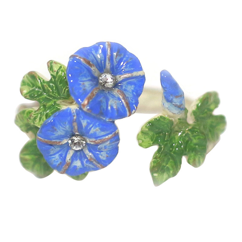 Palnart poc彩色小花ins风格可爱玫瑰花牵牛花蓝色含苞花朵戒指