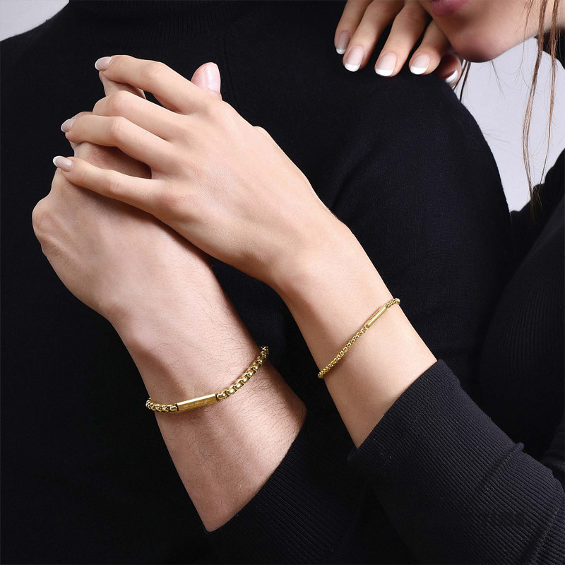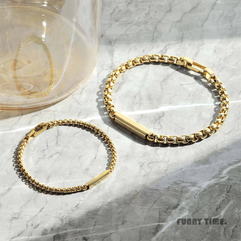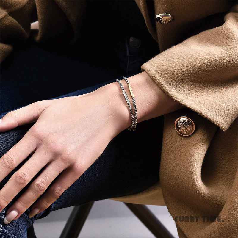 香港Crudo Leather轻奢长方钢条情侣手链原创设计情人礼物送男女