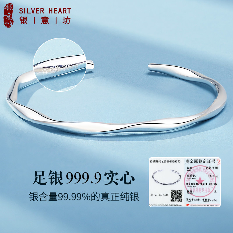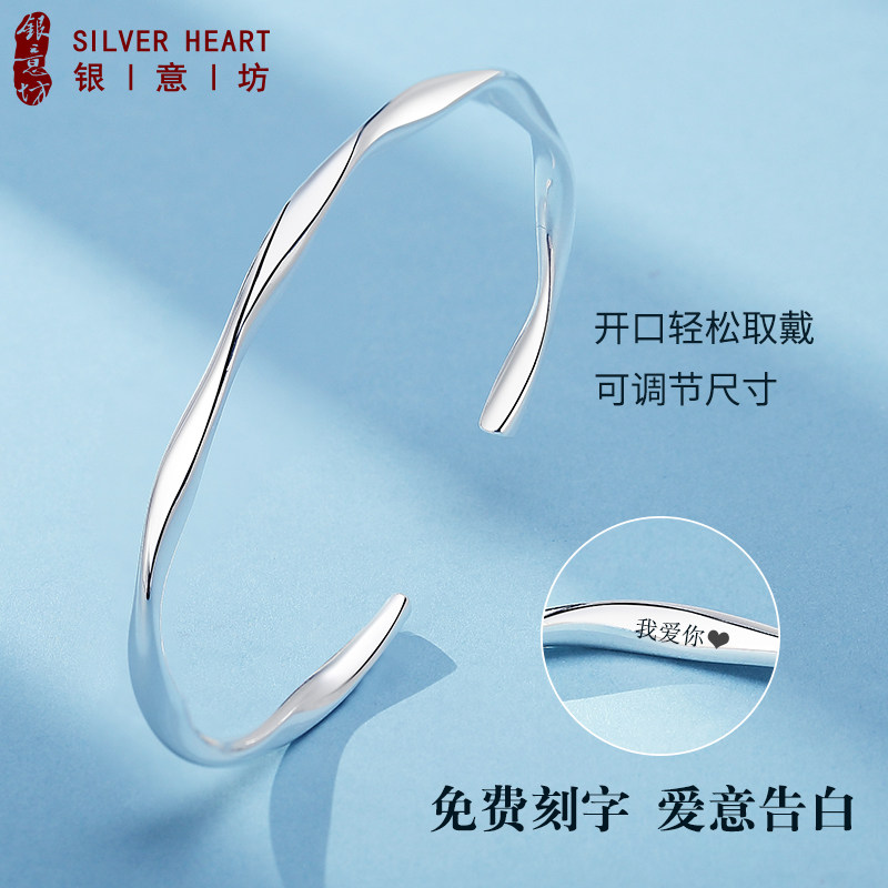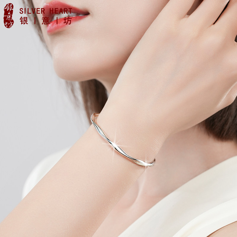 莫比乌斯环银手镯女款2025新款女孩开口9999纯银镯子实心生日礼物