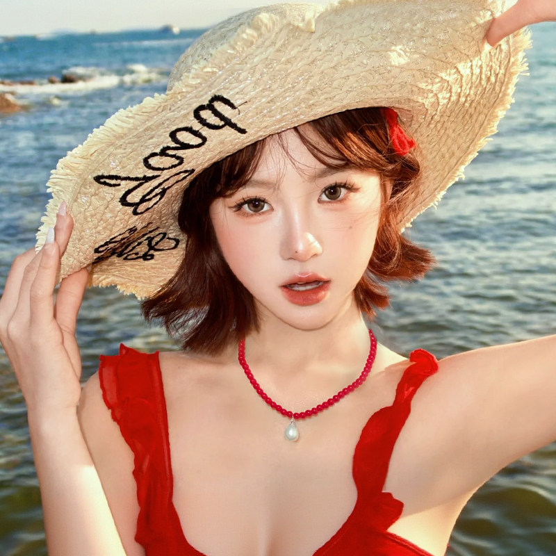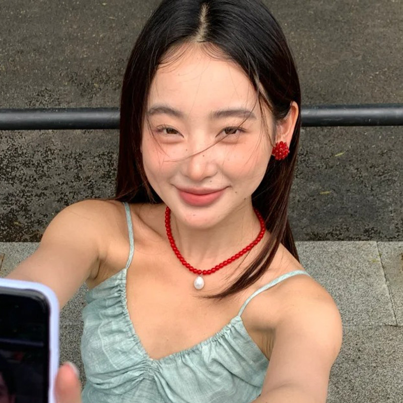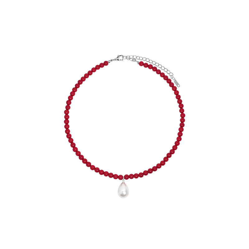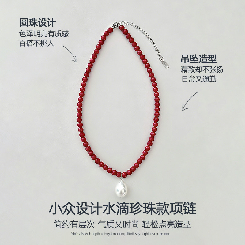 红色水滴珍珠款项链女士新款高级感轻奢小众颈链气质独特漂亮配饰