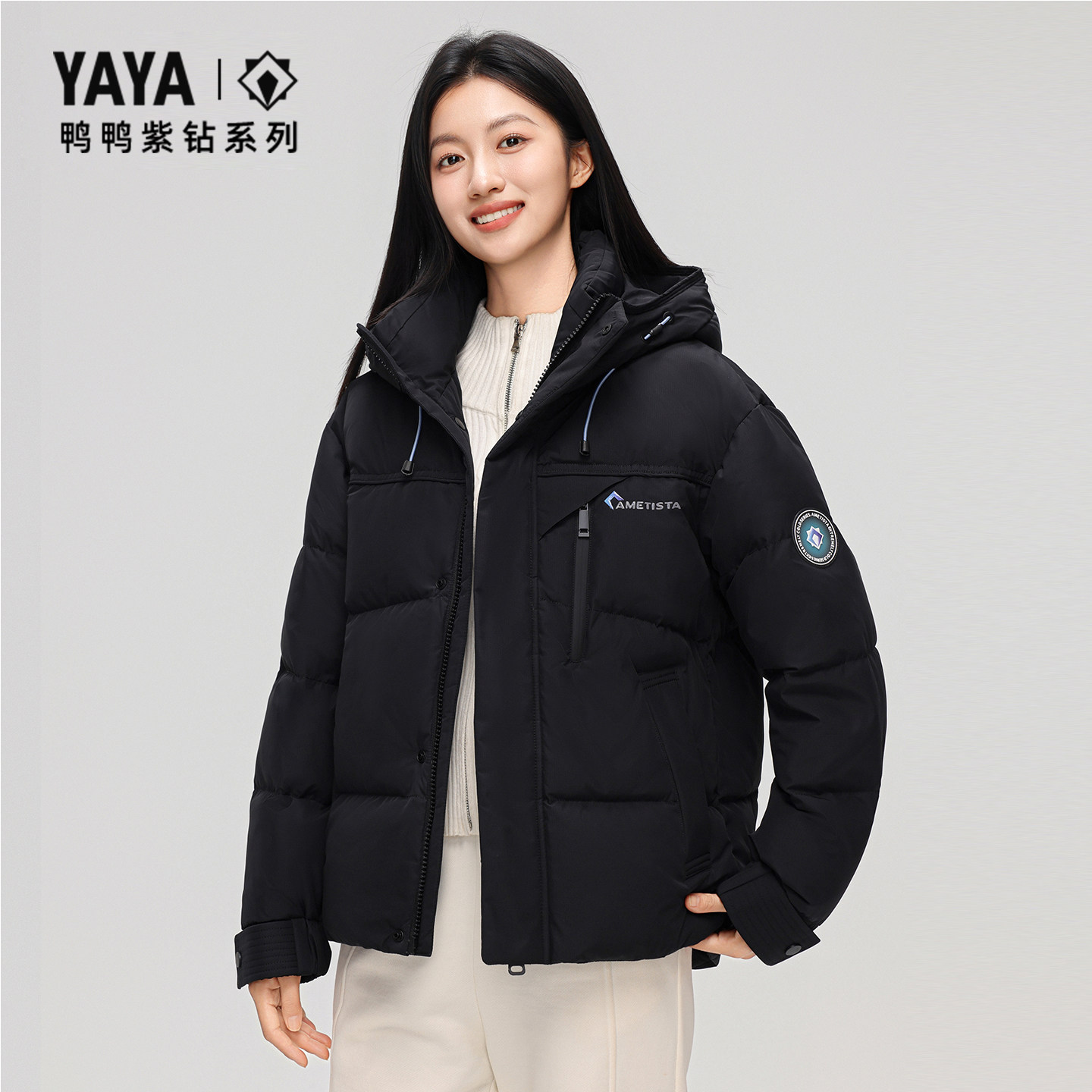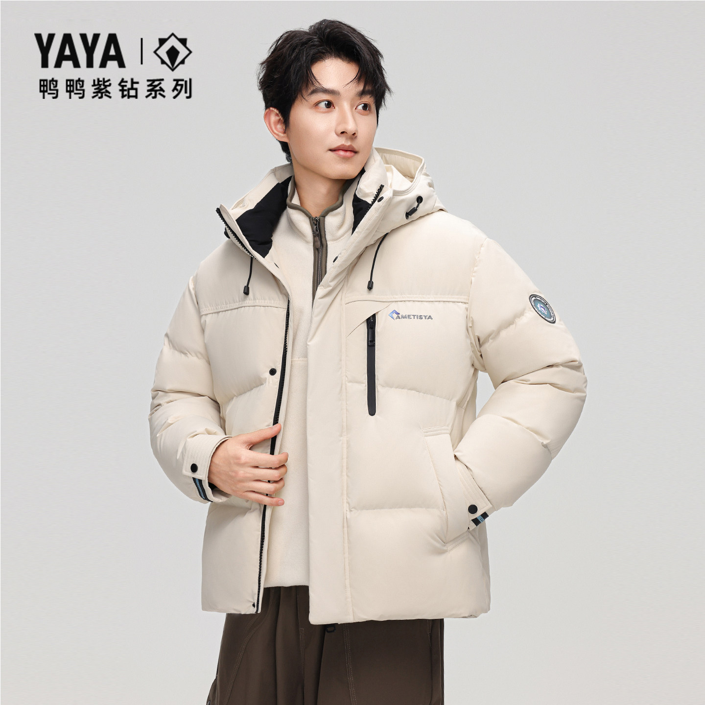 【紫钻系列】鸭鸭羽绒服男2025秋冬新品简约舒适连帽短款休闲外套