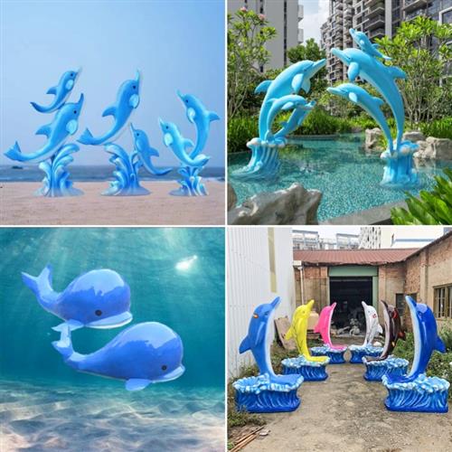 玻璃钢海豚海螺贝壳雕塑鲸鱼摆件园林景观海洋主题沙滩装饰品
