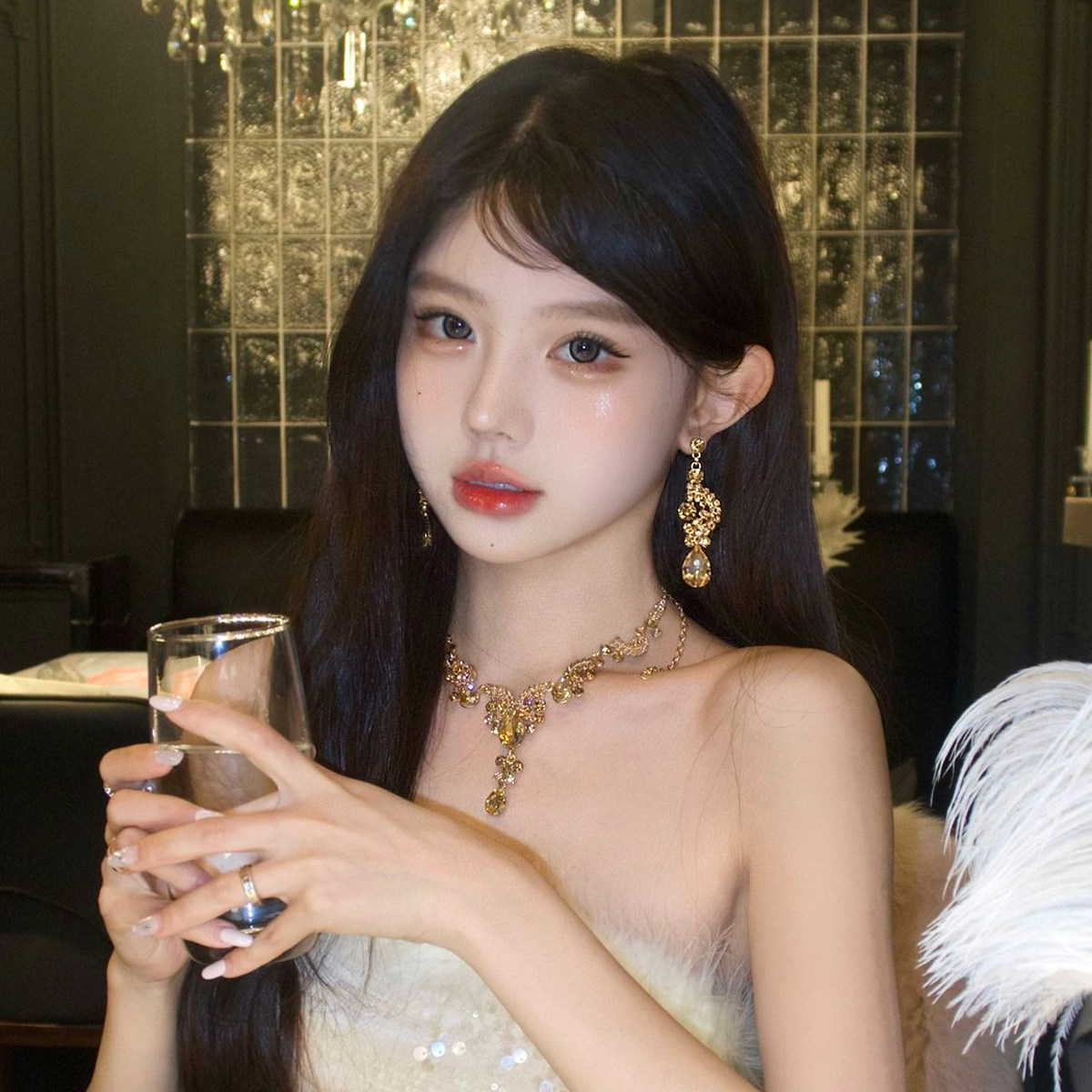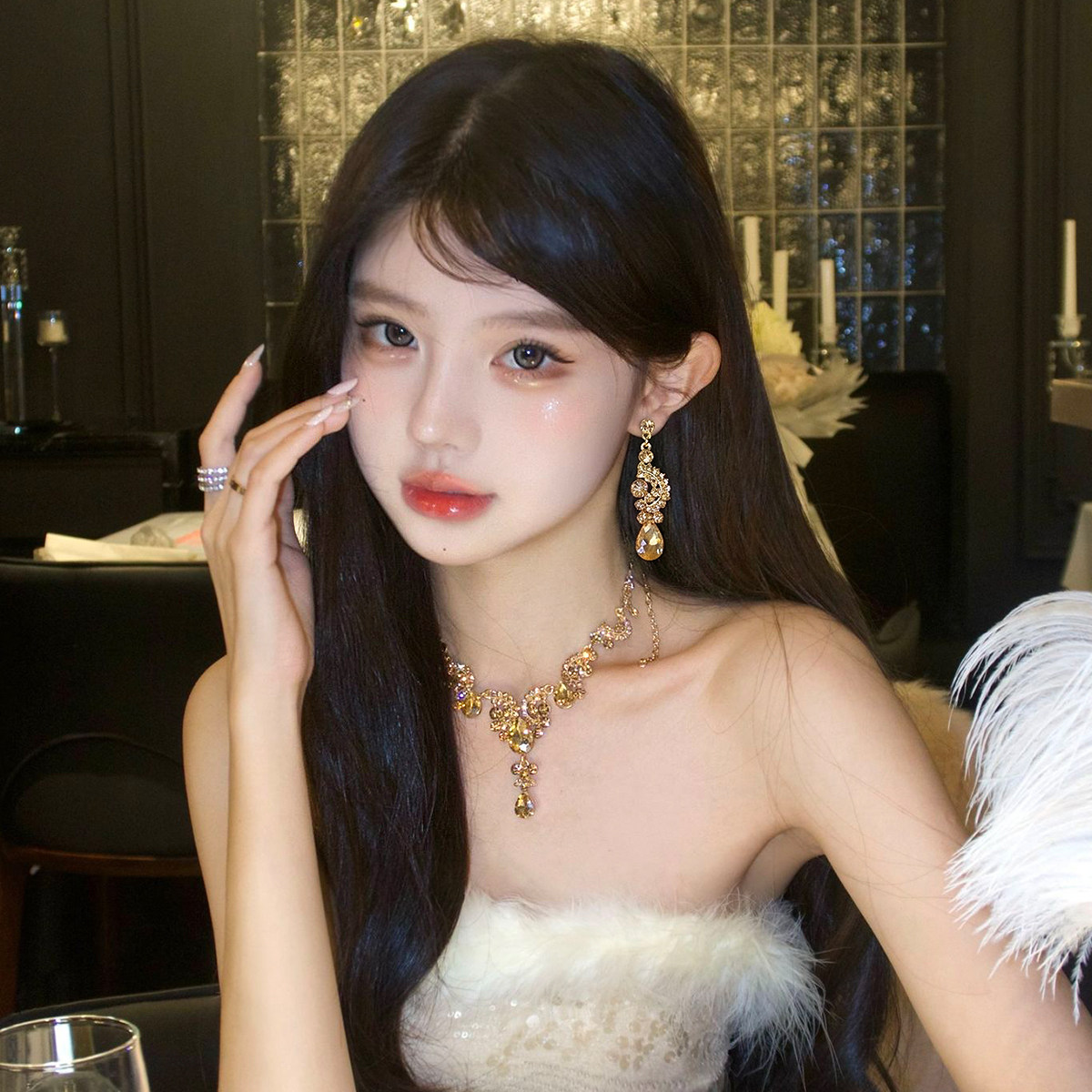 金色流苏项链女款晚礼服夸张配饰千金耳环套装高级生日新娘锁骨链