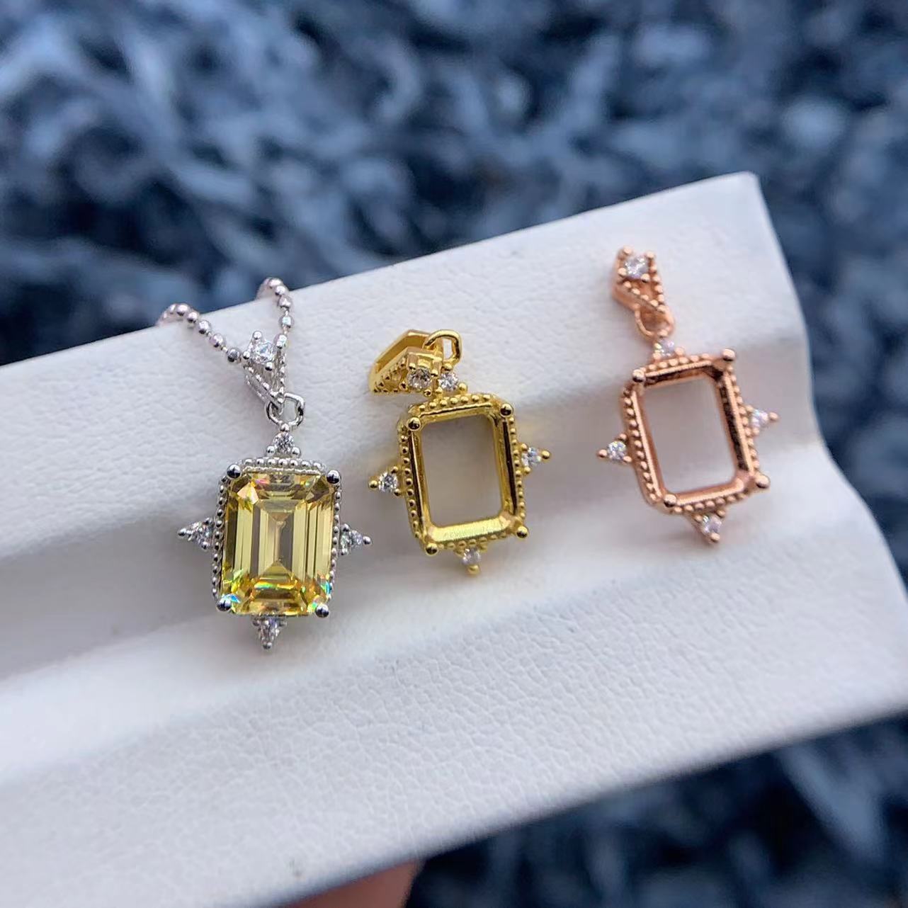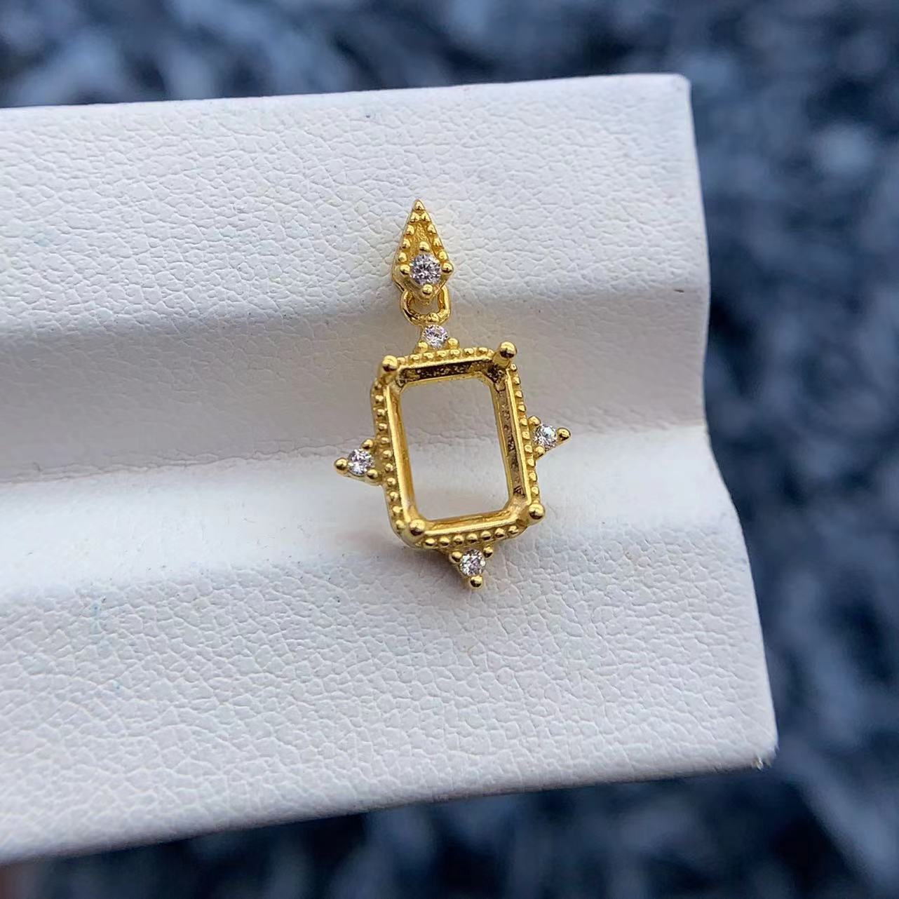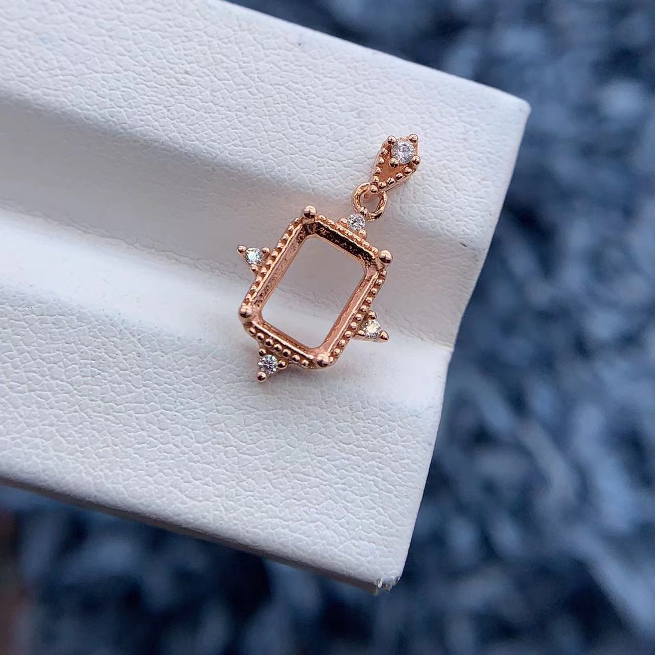 S925纯银吊坠空托长方形6*8/5*7mm时尚精致钻石点缀高级气质百搭