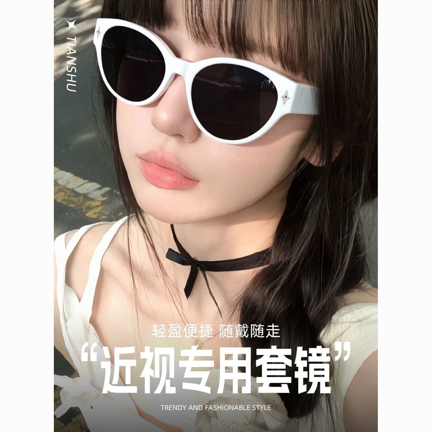 复古网红猫眼墨镜可套近视镜男女同款防紫外线太阳镜2025热卖套镜