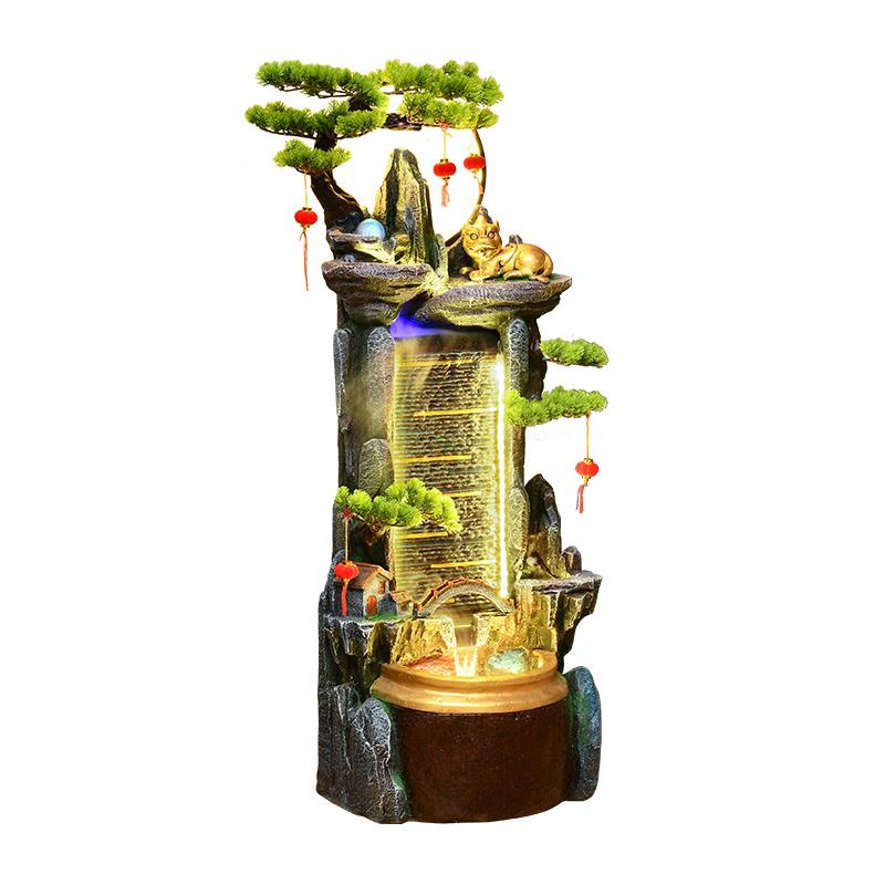 新中式流水摆件落地水幕墙风水轮循环水招财水景开业鱼缸造景喷泉