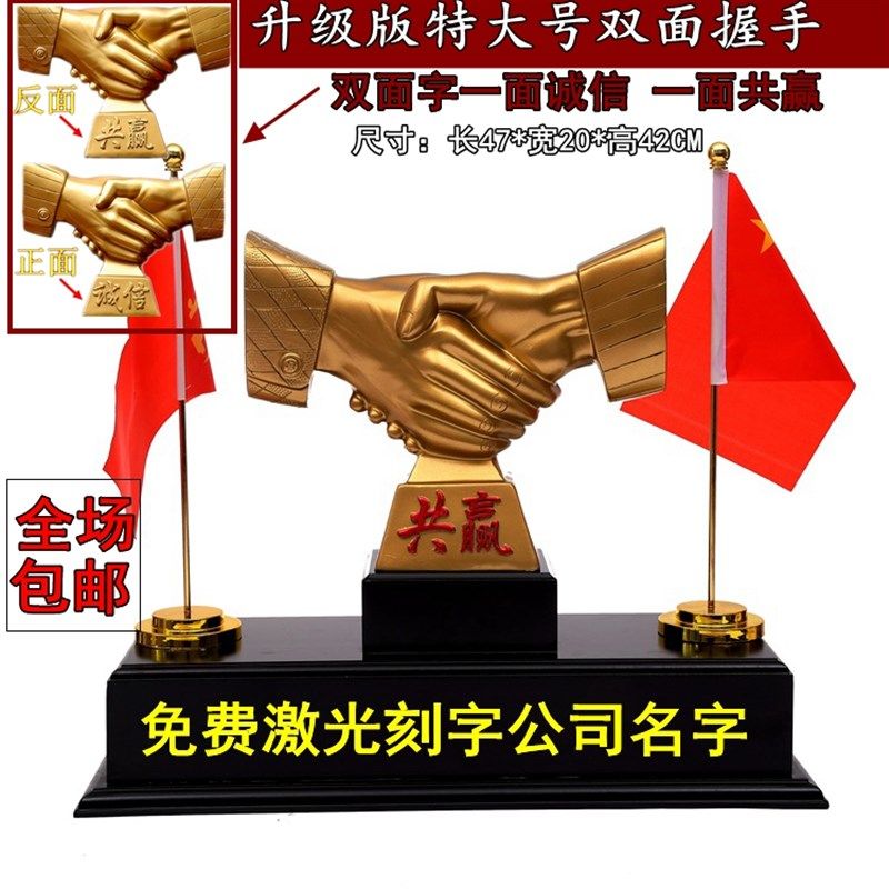 董事长办公室装饰品老板办公桌摆件创G意诚信握手摆设开业礼品定
