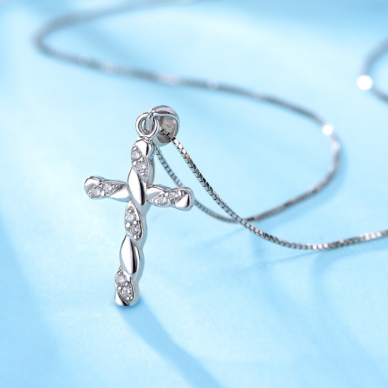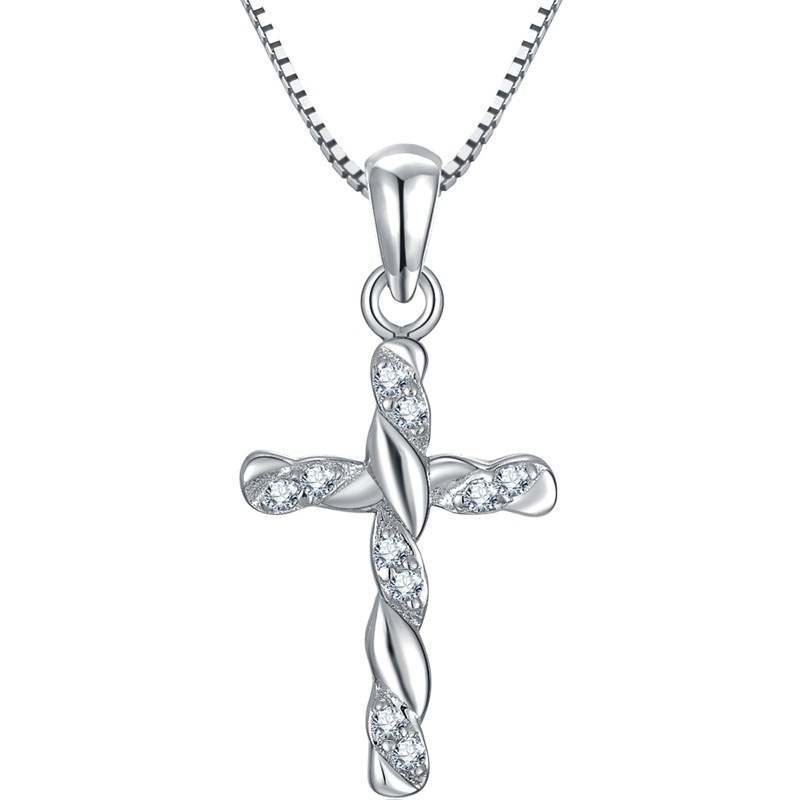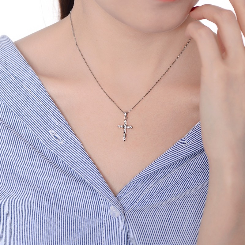 全银镶钻S925纯银镀白金十字架项链吊坠加小迷你吊坠刻字圣诞礼物