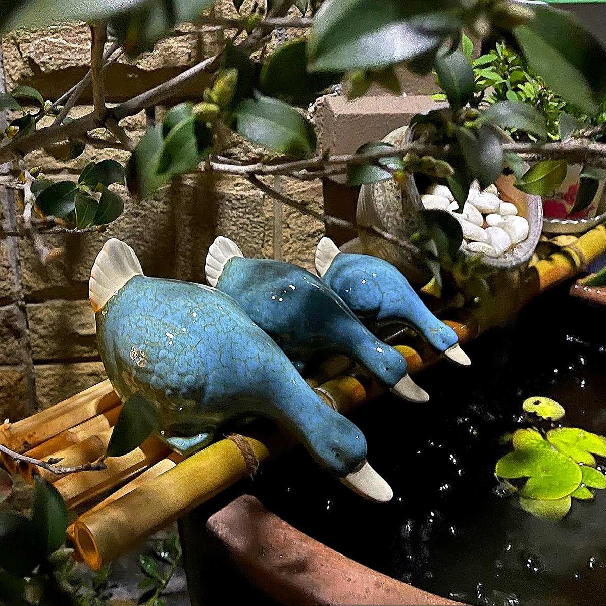 陶瓷喝水鸭子庭院假山石槽水池造景鱼缸室外鱼池现代简约装饰摆件