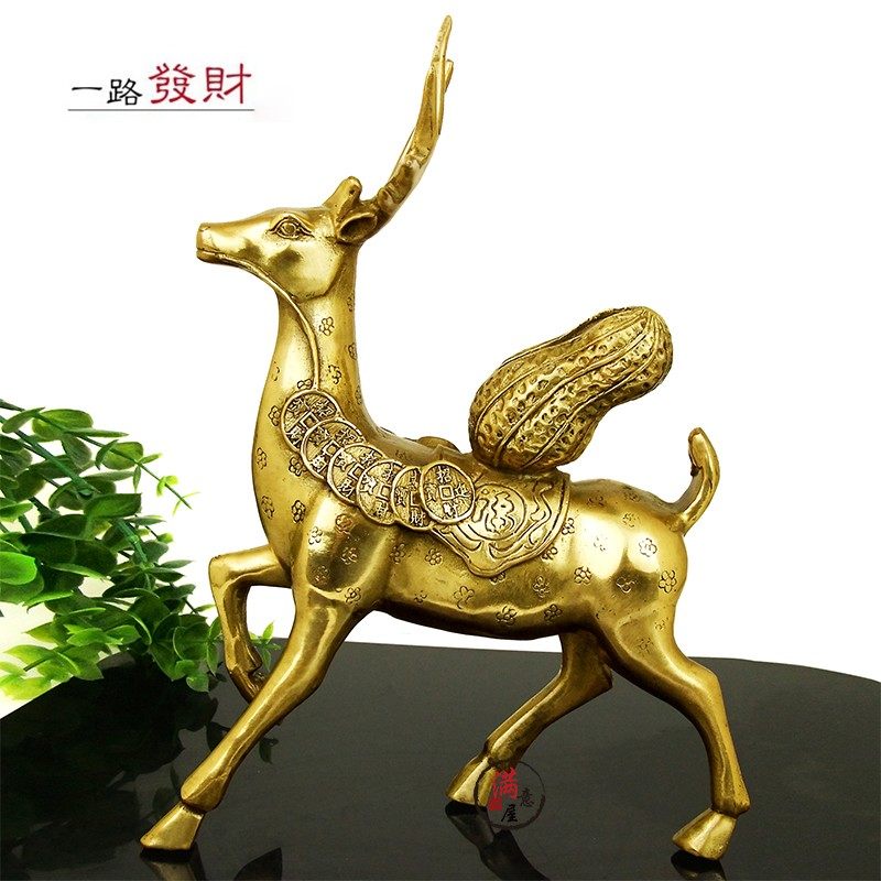 全铜梅花鹿摆件一对铜鹿福禄一路生财发财工艺品家居客厅公司摆设