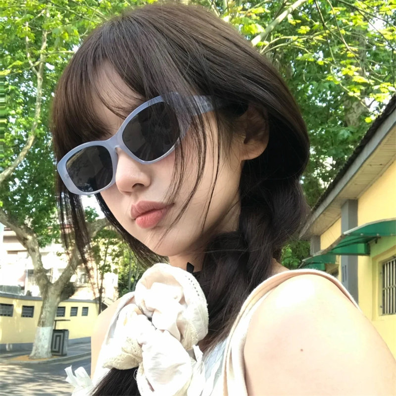 2024新淡蓝色太阳镜方形网红圆脸显瘦沙滩遮阳马卡龙糖果偏光墨镜
