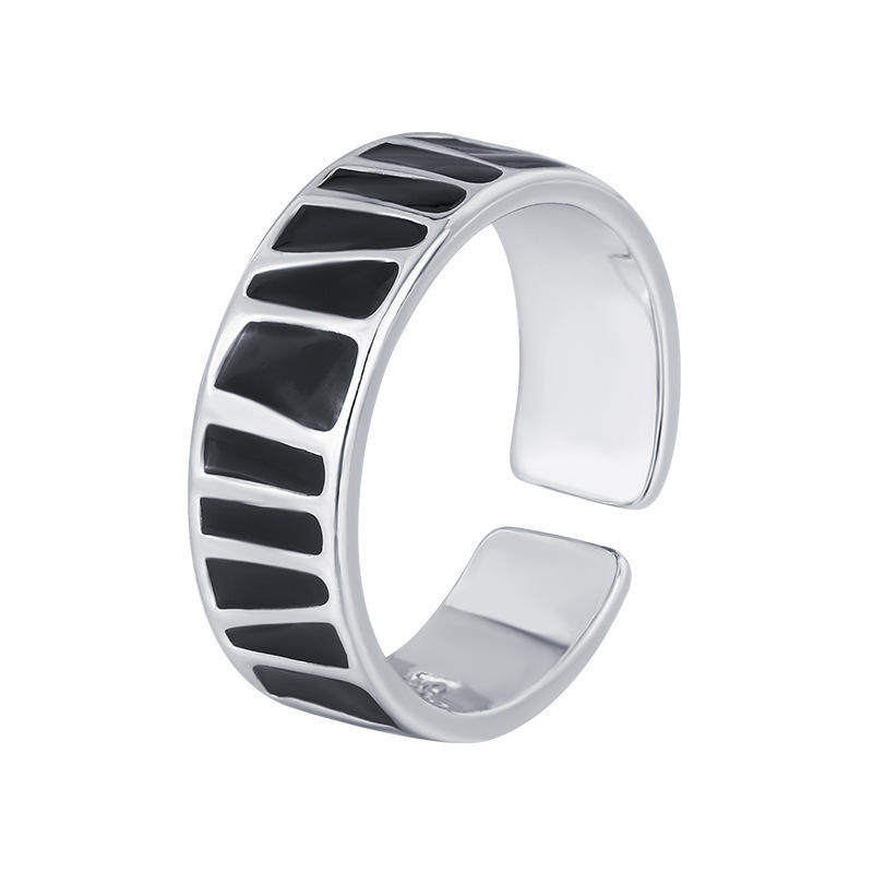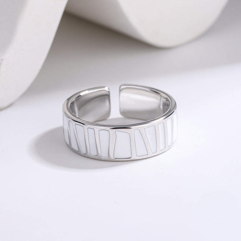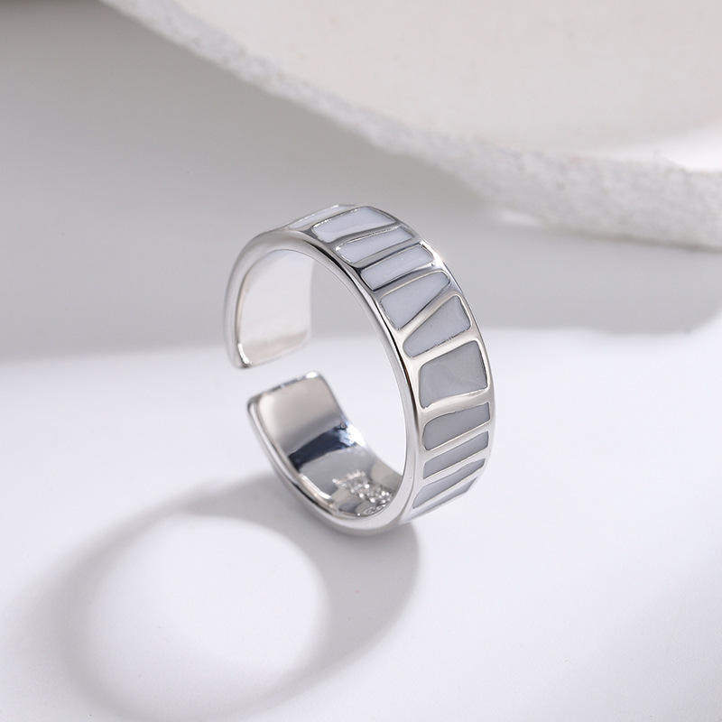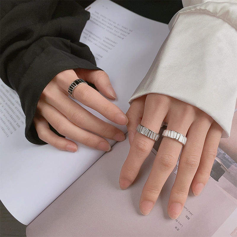 新款 欧美跨境高级感珐琅滴釉黑白灰色戒指女个性冷淡风简约指环