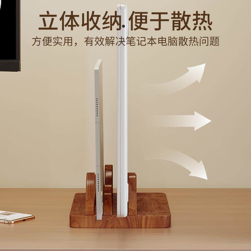 黑胡桃木立式笔记本支架电脑收纳架托竖式桌面收纳架直立底座