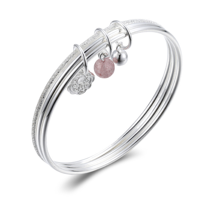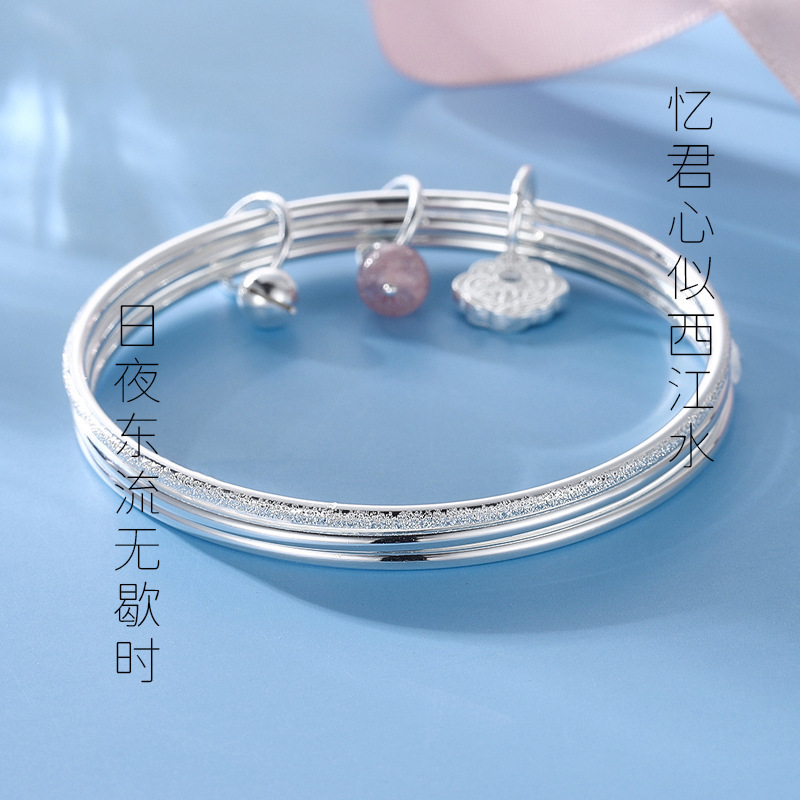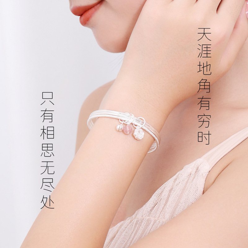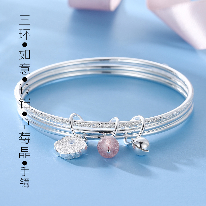 莲子草莓晶手镯女三生三世镯子送女友银999如意足铃铛纯银