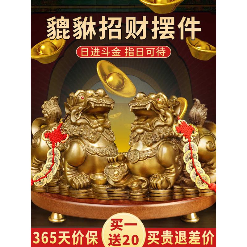 貔貅摆件聚财纯铜公母一对家用办公室居家客厅霸王豸皮丘