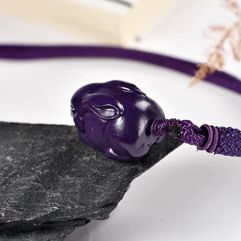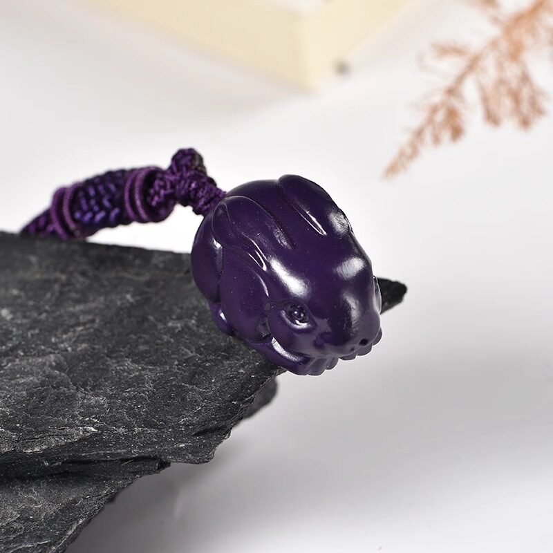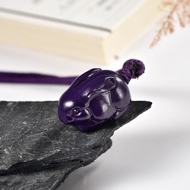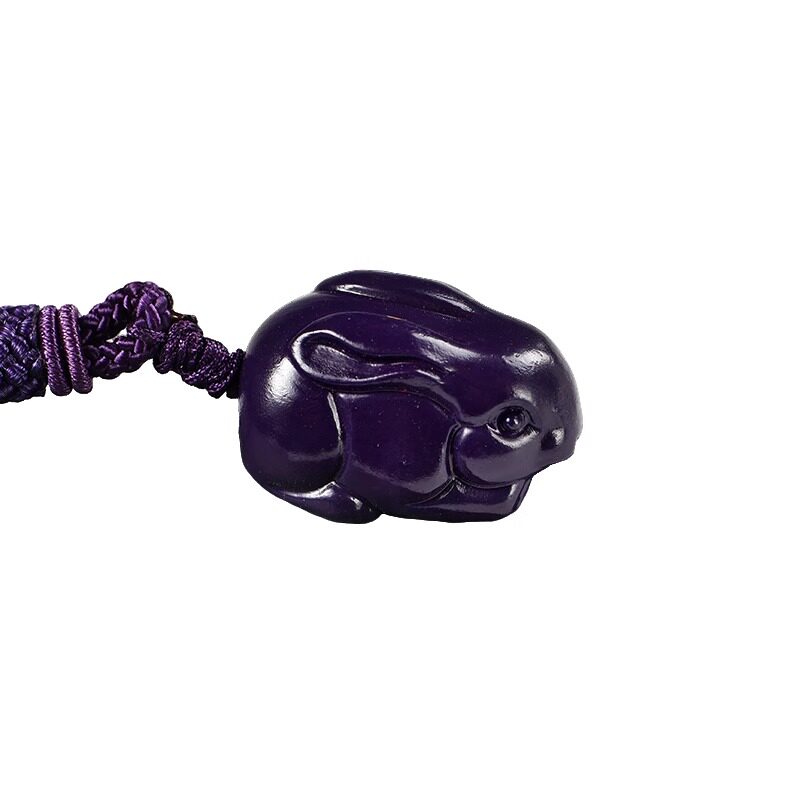 紫色木头雕刻兔子吊坠红木实木十二生肖木质木兔子吉祥物木制挂件