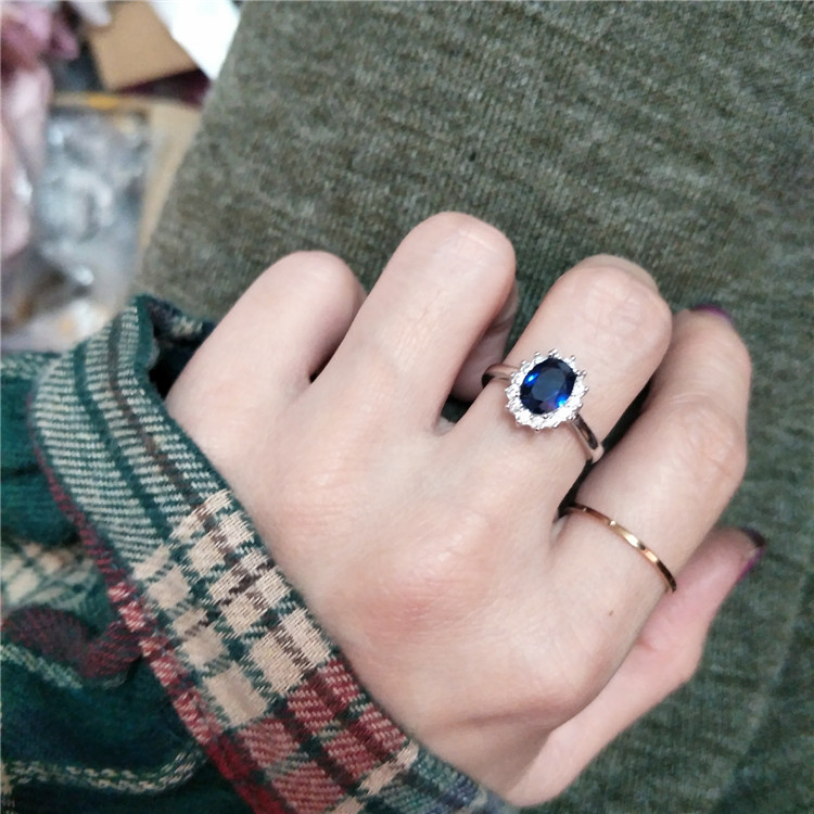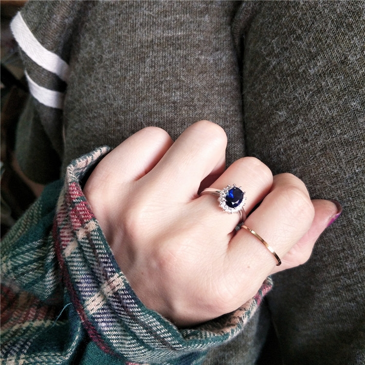 轻奢小众设计高级感蓝色宝石时尚925纯银活口钻戒食指戒指环女潮