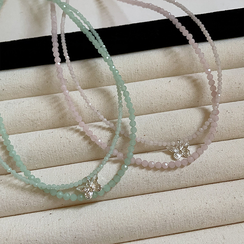 双层水晶蝴蝶吊坠项链女夏季新款简约个性百搭气质时尚颈链锁骨链