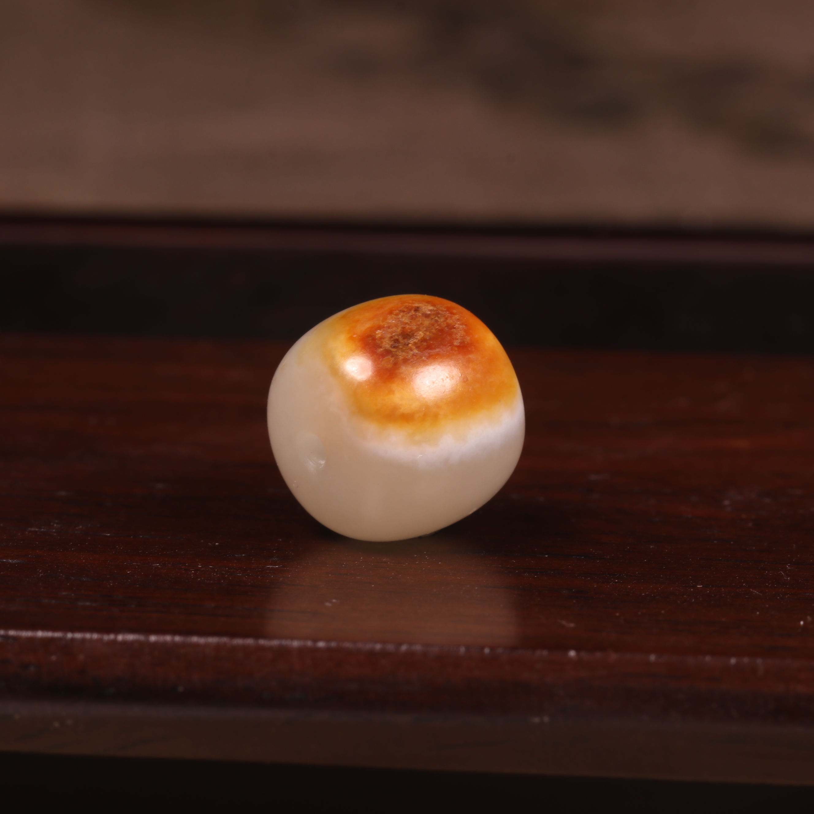 12mm正宗新疆和田玉籽料老型珠青花桶珠珠子单珠散珠手串手持顶珠