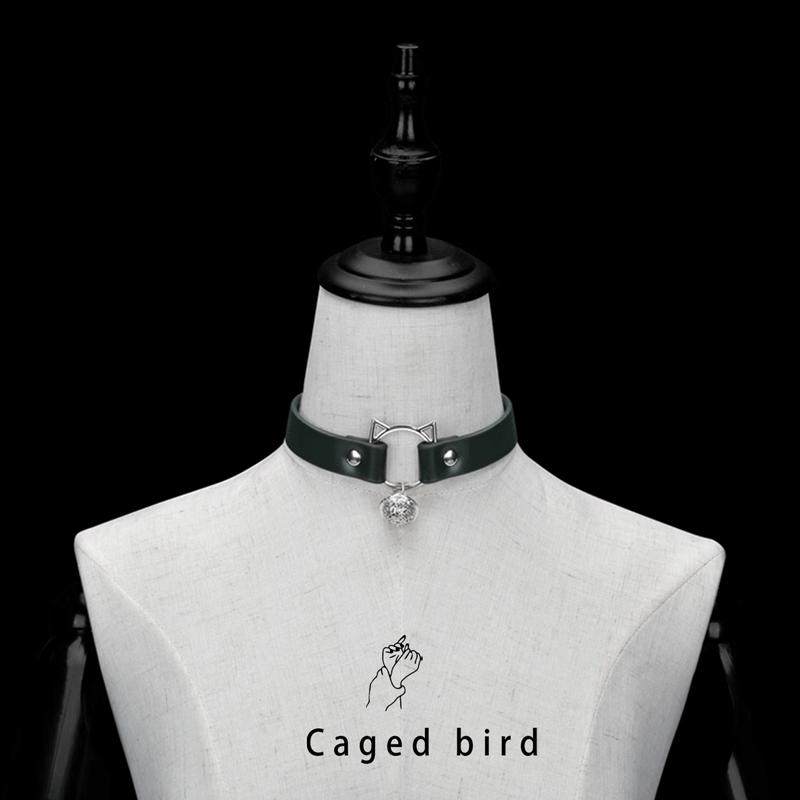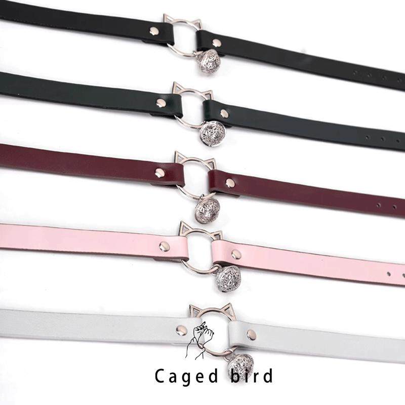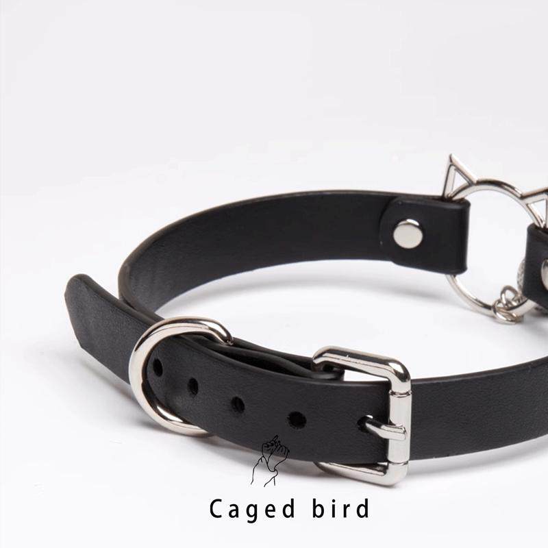 笼中鸟 猫咪铃铛项圈女定制刻字皮革choker黑/粉色k8k9狗狗牵引绳