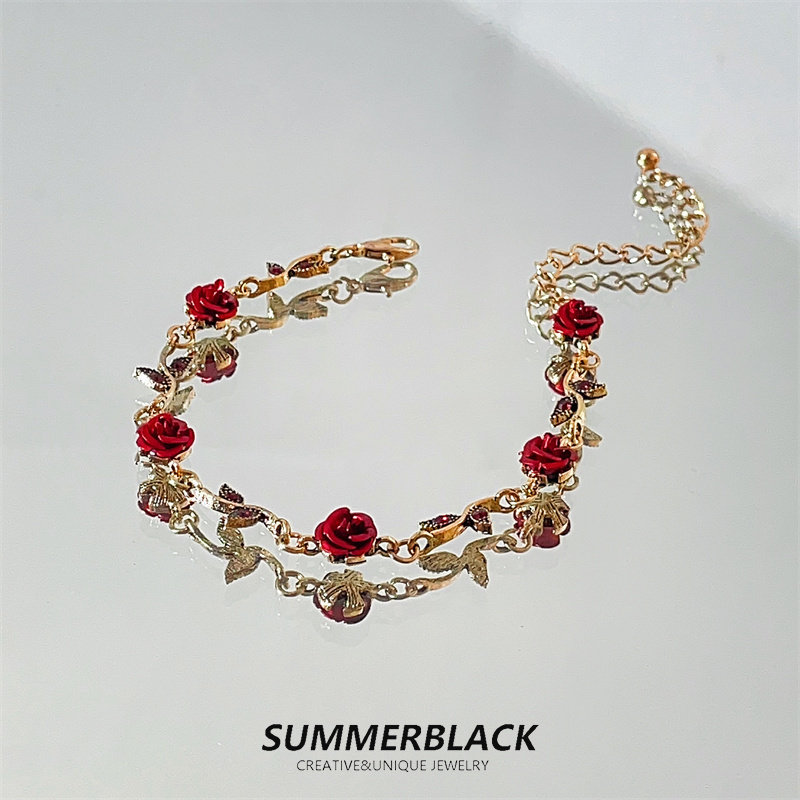 玫瑰花朵手链女高颜值学生党轻奢小众精致高级感手饰2024新款爆款
