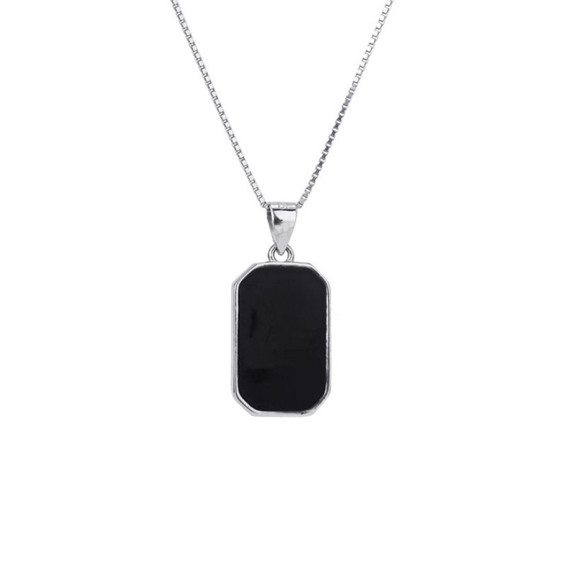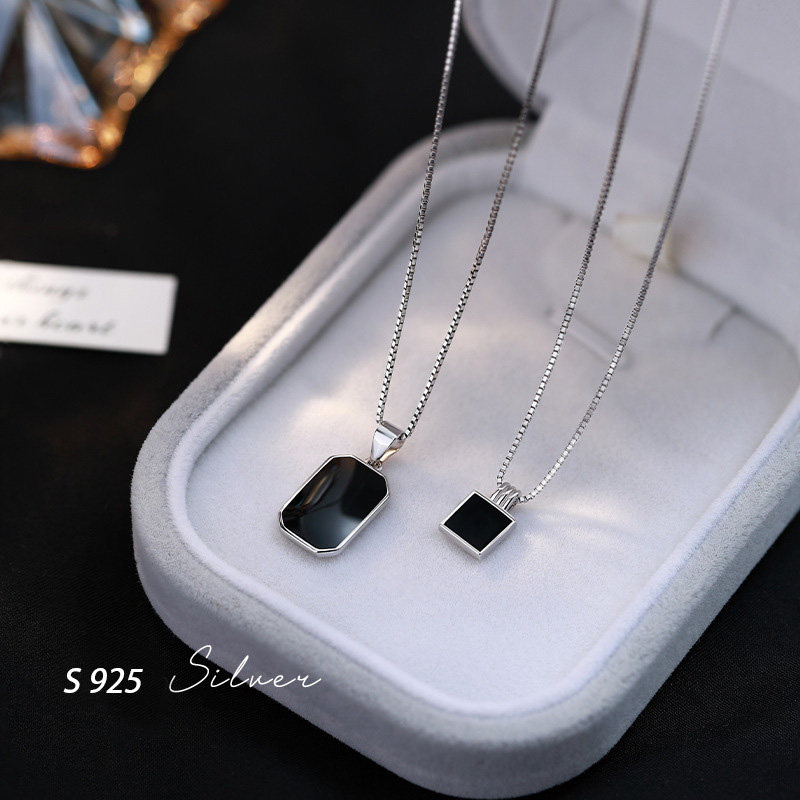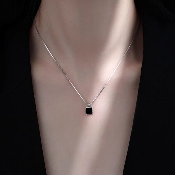 KLZ无事牌黑曜石纯银项链女2025新款小众简约方牌轻奢高级锁骨链