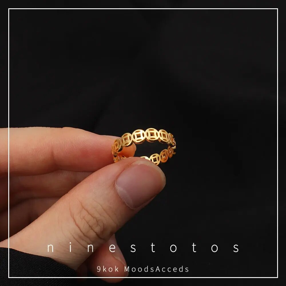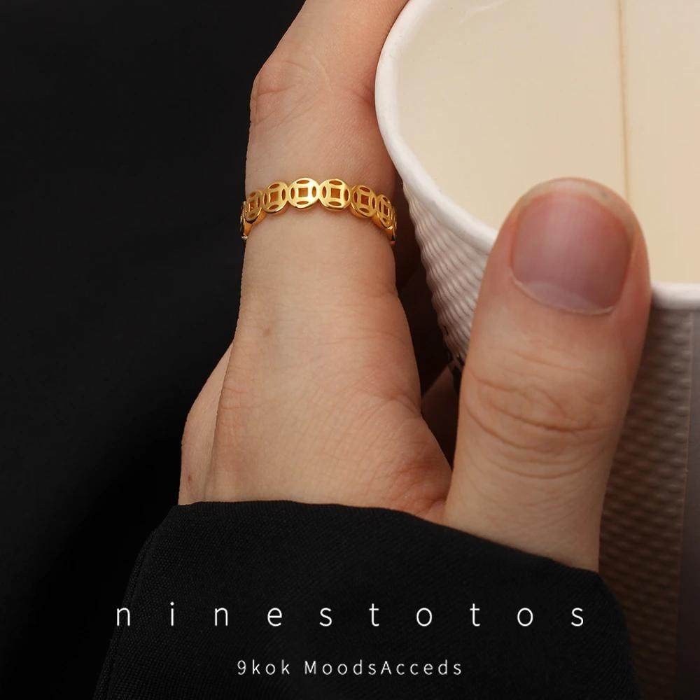 钛钢戒指 高级感轻奢款女男士素圈金色戒指小众情侣对戒手饰品