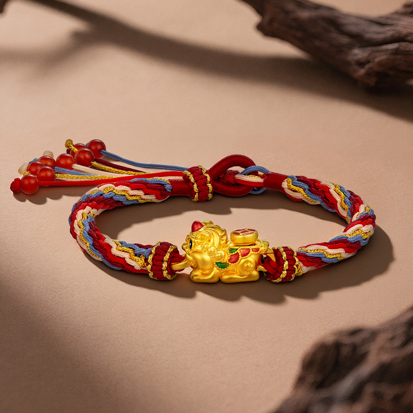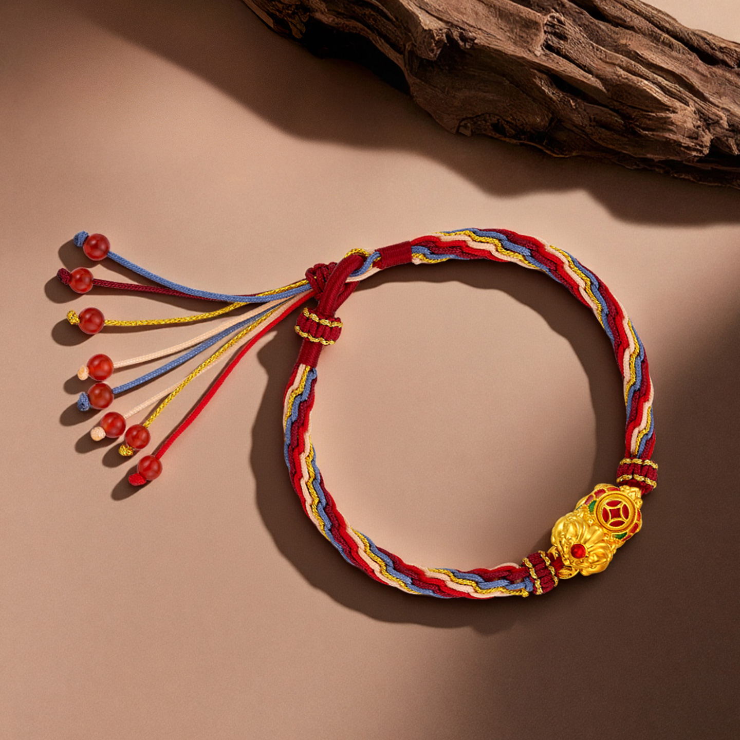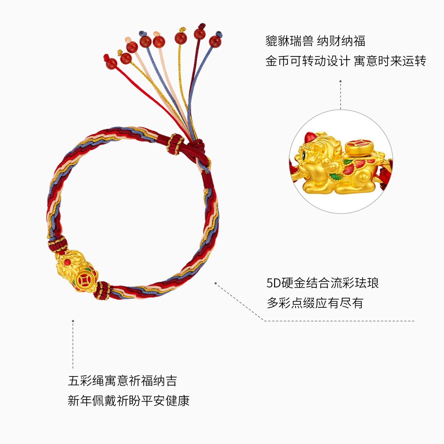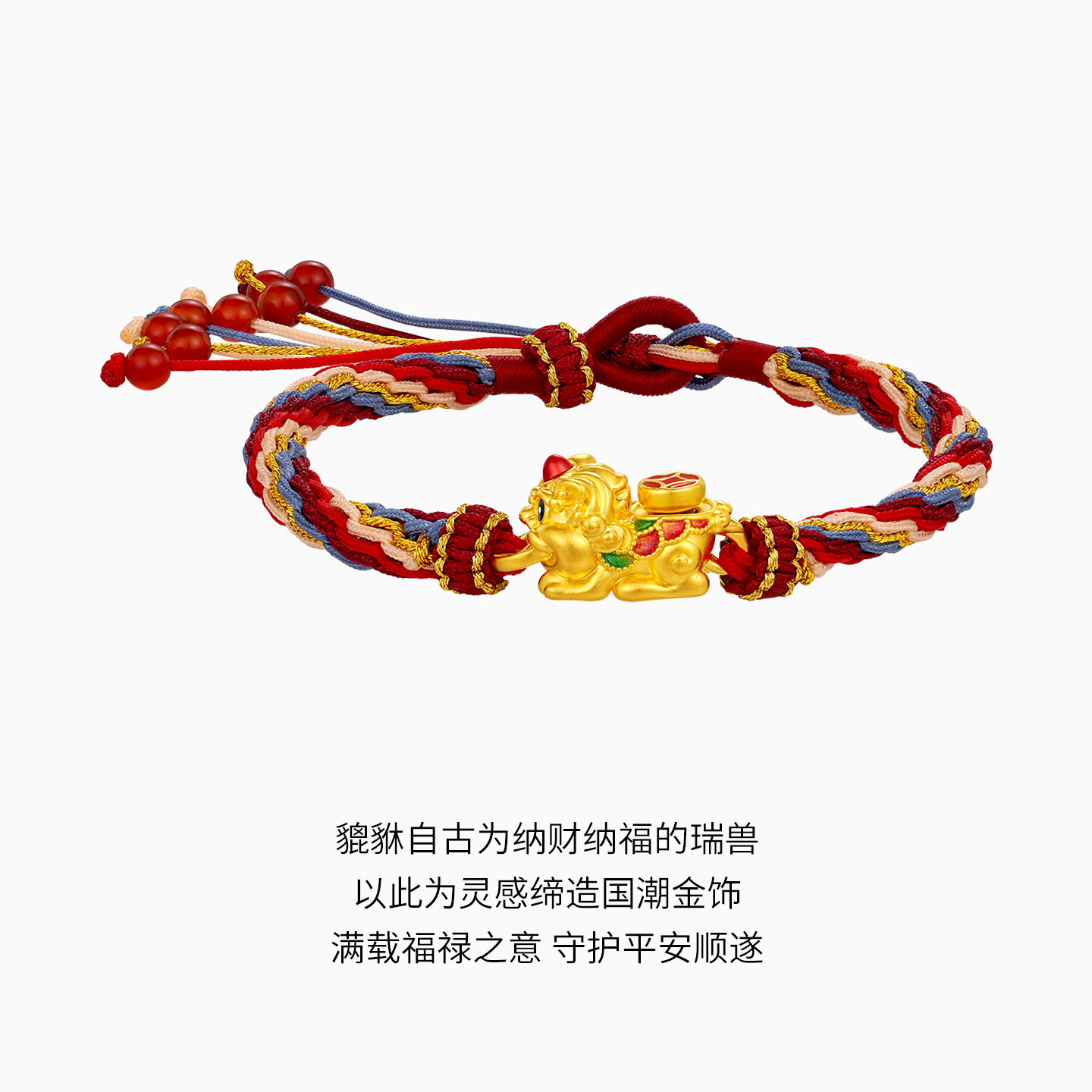 潮宏基招财凤尾小财绳黄金手链貔貅足金手绳吞金兽轮回红绳女 X6