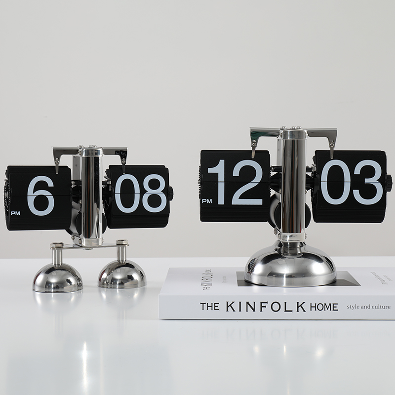 现代简约客厅创意自动翻页时钟摆件家居样板房电视柜软装饰品摆设