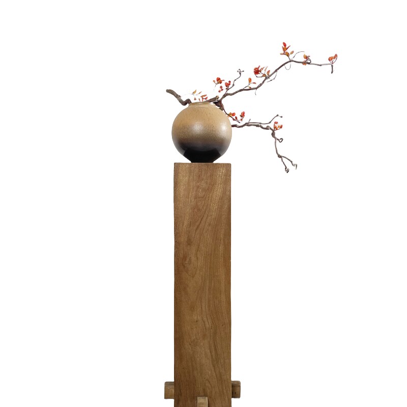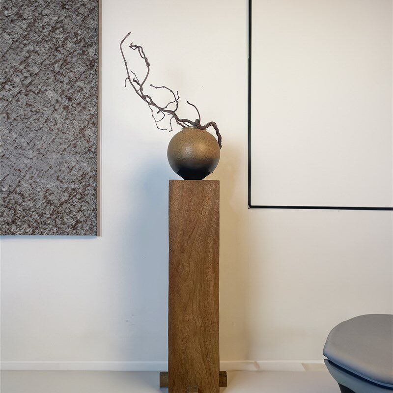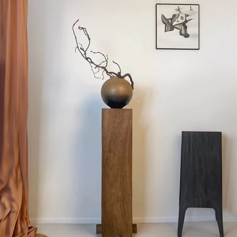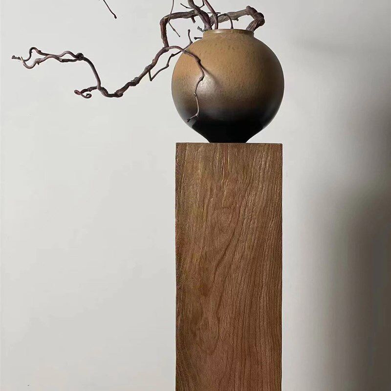 侘寂风实木墩底座中古风柱子雕塑台客厅茶室玄关木雕民宿复古摆件
