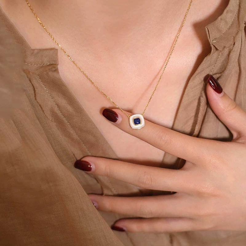 Maple《夹心吐司》天然白贝母青金石925纯银项链女方块轻奢锁骨链