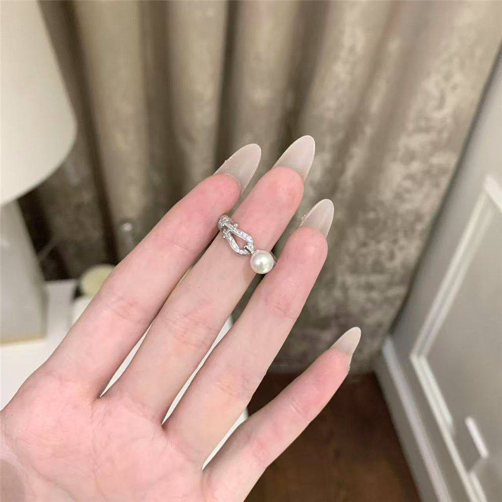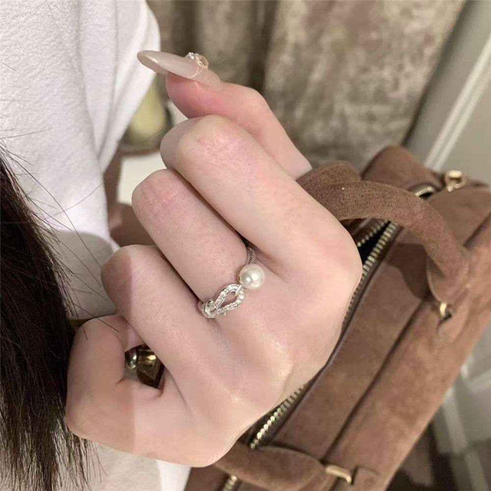 爆闪马蹄扣仿珍珠戒指女小众设计轻奢高级感2026新款情侣对戒指环